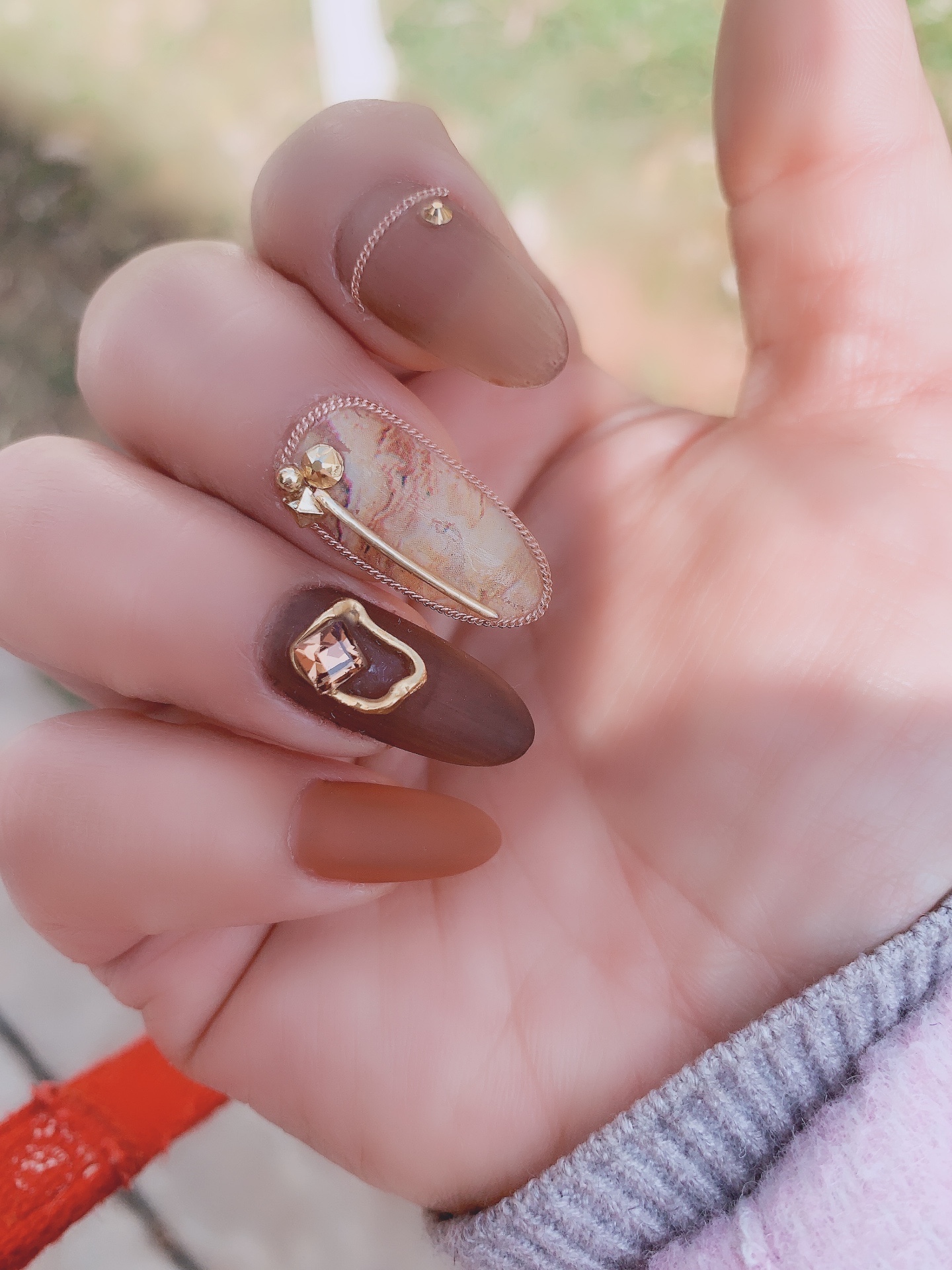 楼兰楼兰,适合秋冬的焦糖色美甲,显手白哦。#美甲秀秀#