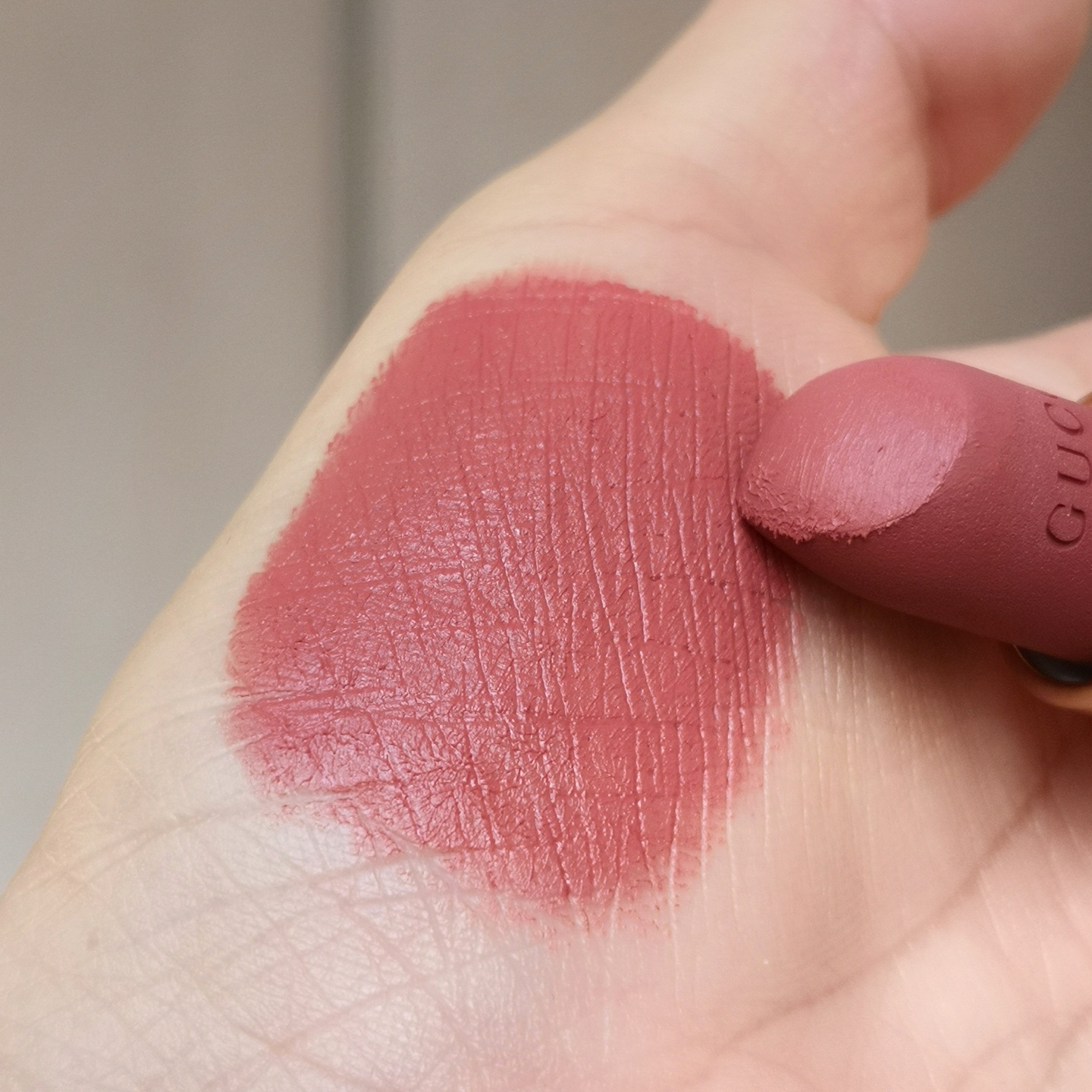 最美的就是gucci这个柔雾效果的哑光质地,涂抹的时候还有点软糯的高级奶油感~