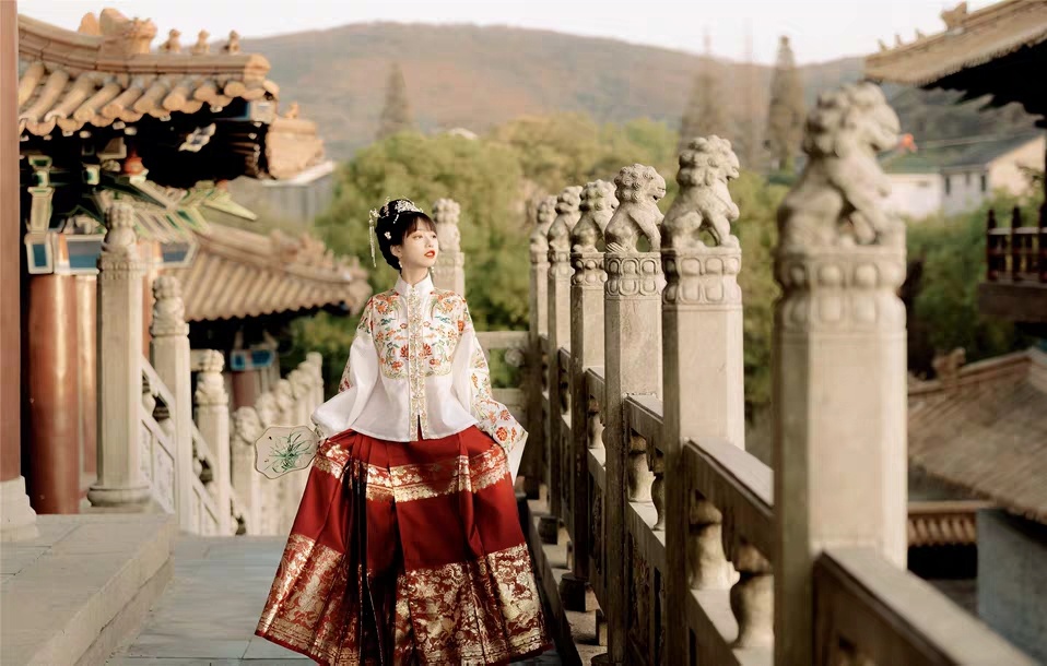 #汉服推荐# 明代的贵妇多是穿红色大袖的袍子,一般妇女只能穿桃红、紫绿及一些浅淡的颜色。平日常穿的是短衫长裙,腰上系着绸带,裙子宽大,样式很多,像百褶裙、凤尾裙、月华裙等。#爱官方爱热门# #汉服安利# #国风少年美如画# @MT小助手