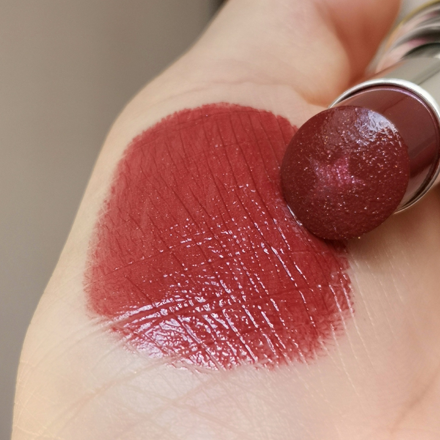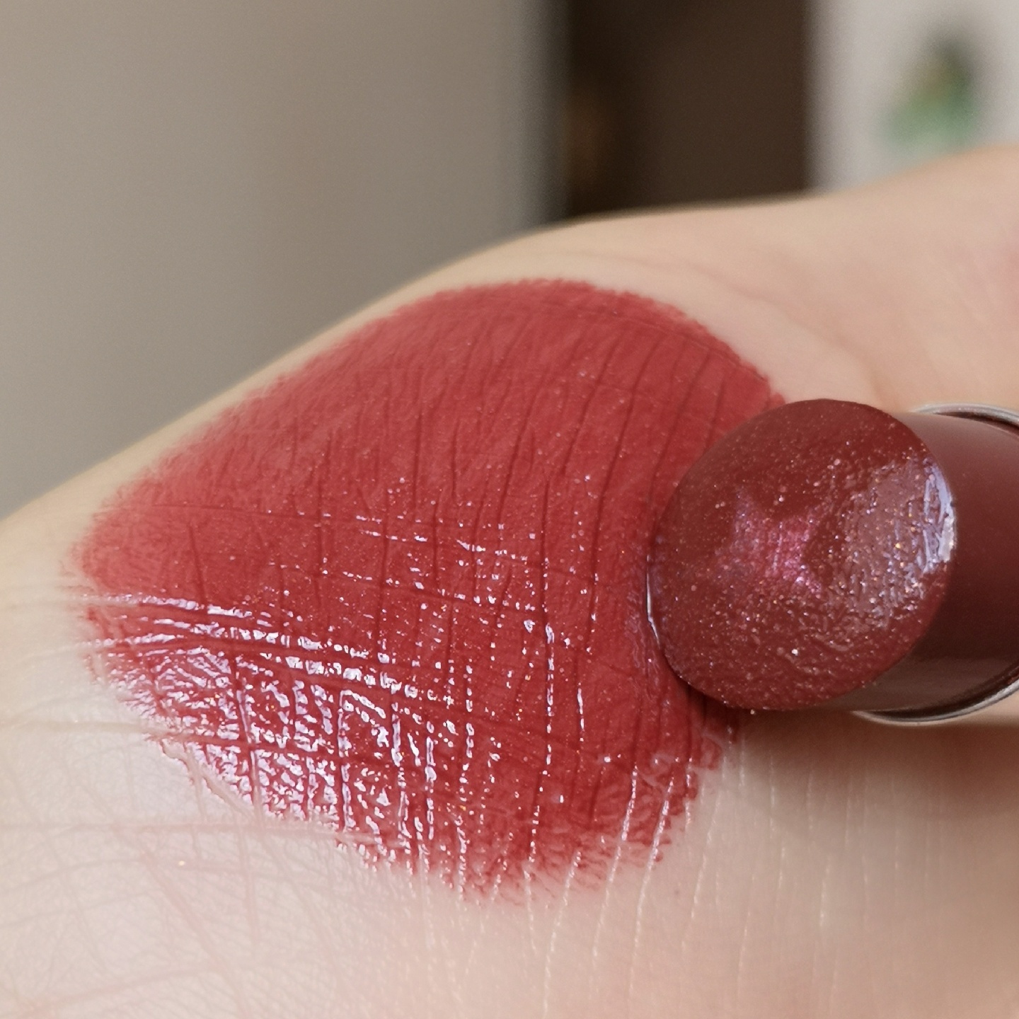 我薄涂会偏蜜桃红豆沙奶茶色,厚涂红棕调居然还蛮浓郁的