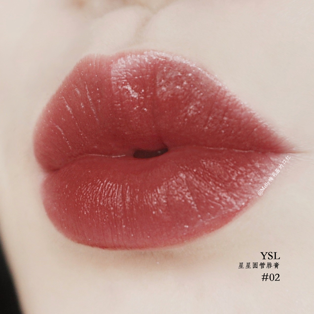 YSL新品星星圆管02!清透日杂蜜桃感红棕!