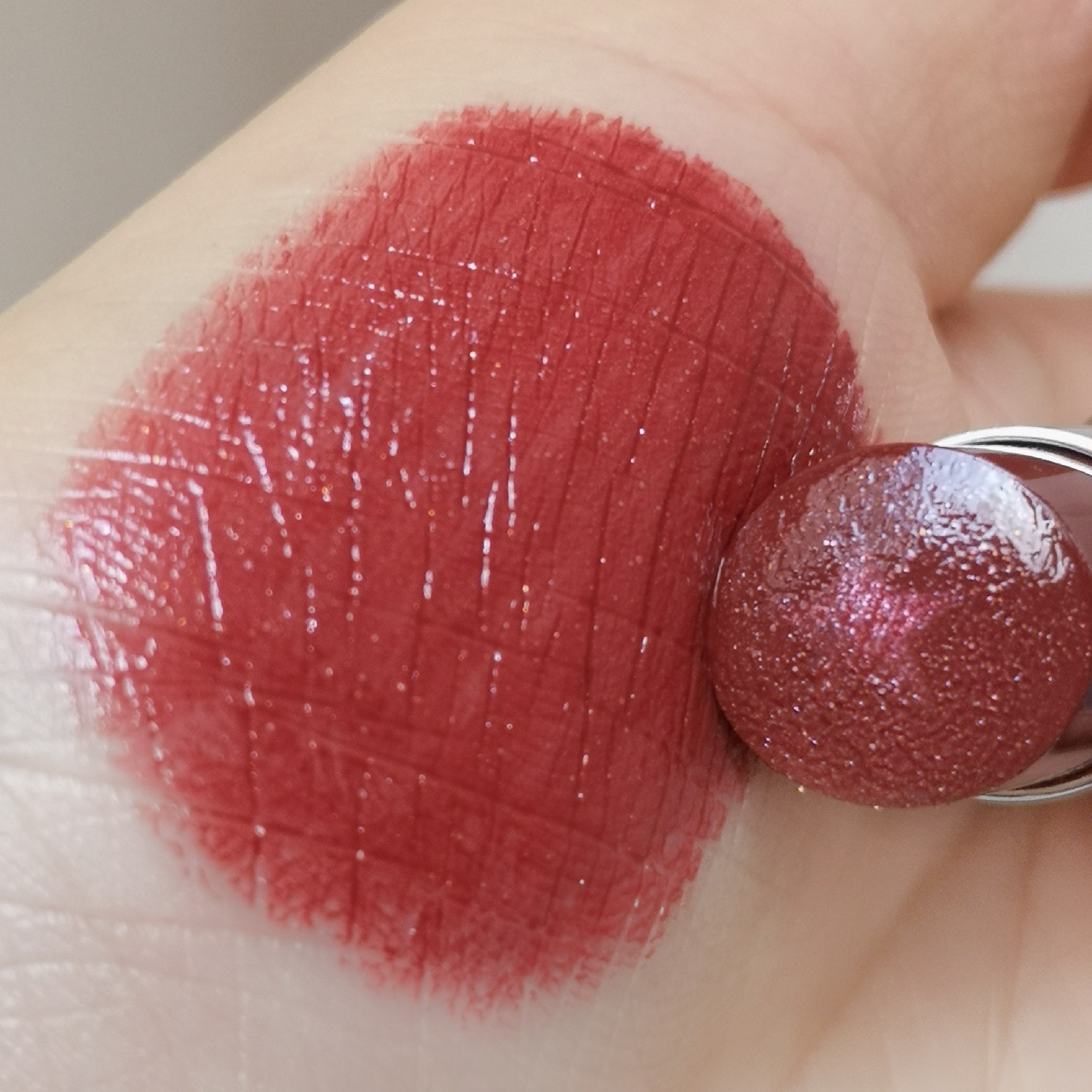 02真的又清透又柔美!带一点蜜桃红调的红棕色,质地比较清透所以会和唇色融合,可能比较容易千人千色