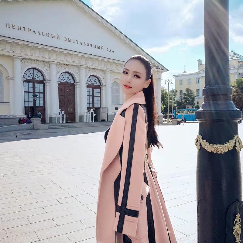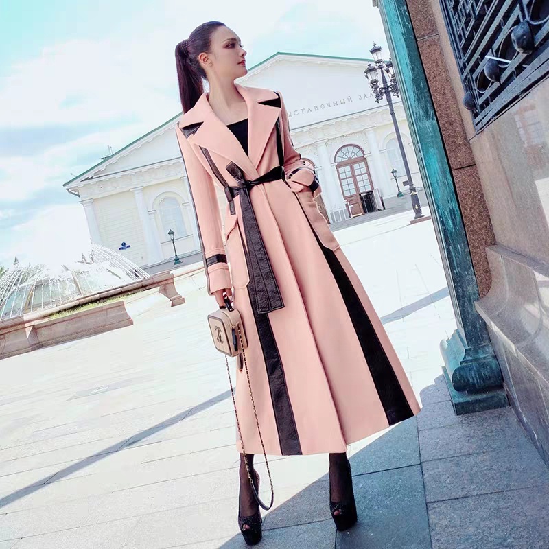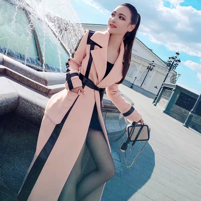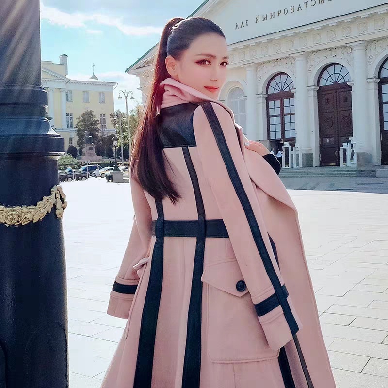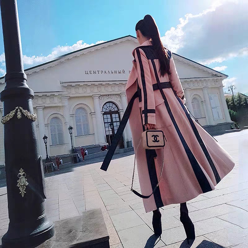 秋冬装时尚通勤气质撞色拼接毛呢大衣外套女