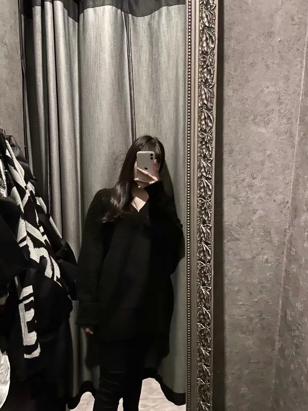 #对着镜子拍照##黑色系#喜欢穿黑色系列衣服的女生