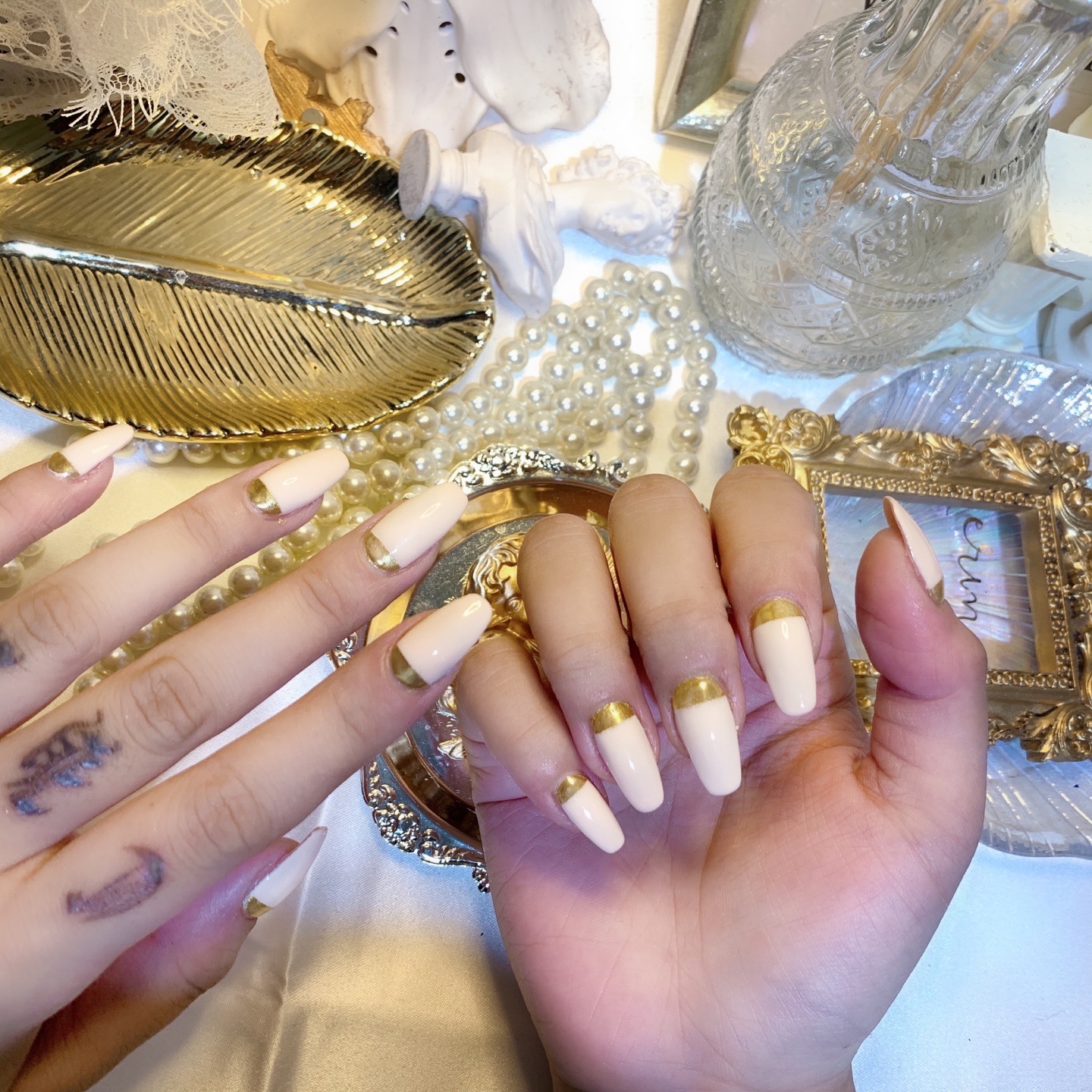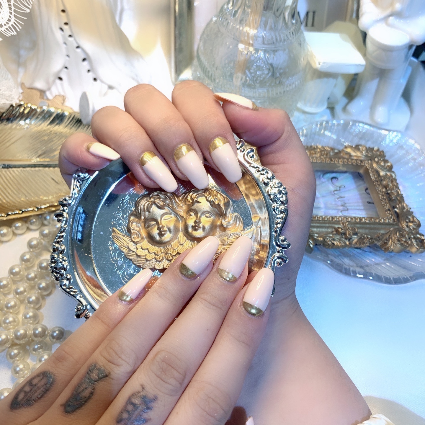 欧美风美甲欧美风美甲裸色显白又高级后缘金边更显精致-美图社区-美图秀秀