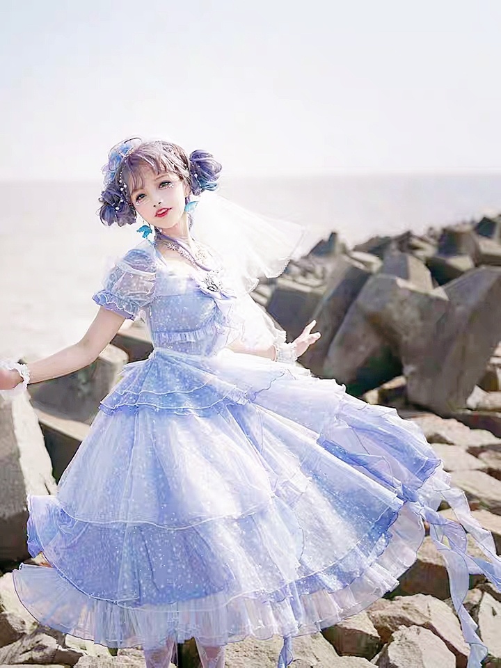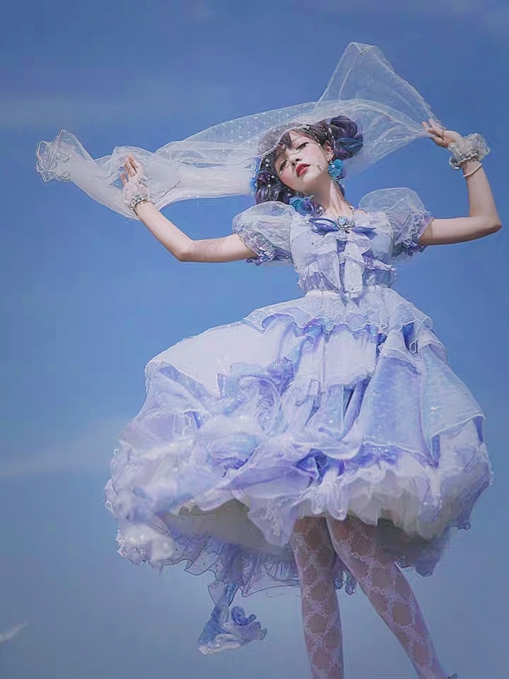 深海少女 色彩层次丰富,晶莹的蓝紫色♥#好看的小姐姐# #安利# #洛丽塔# #lo裙#