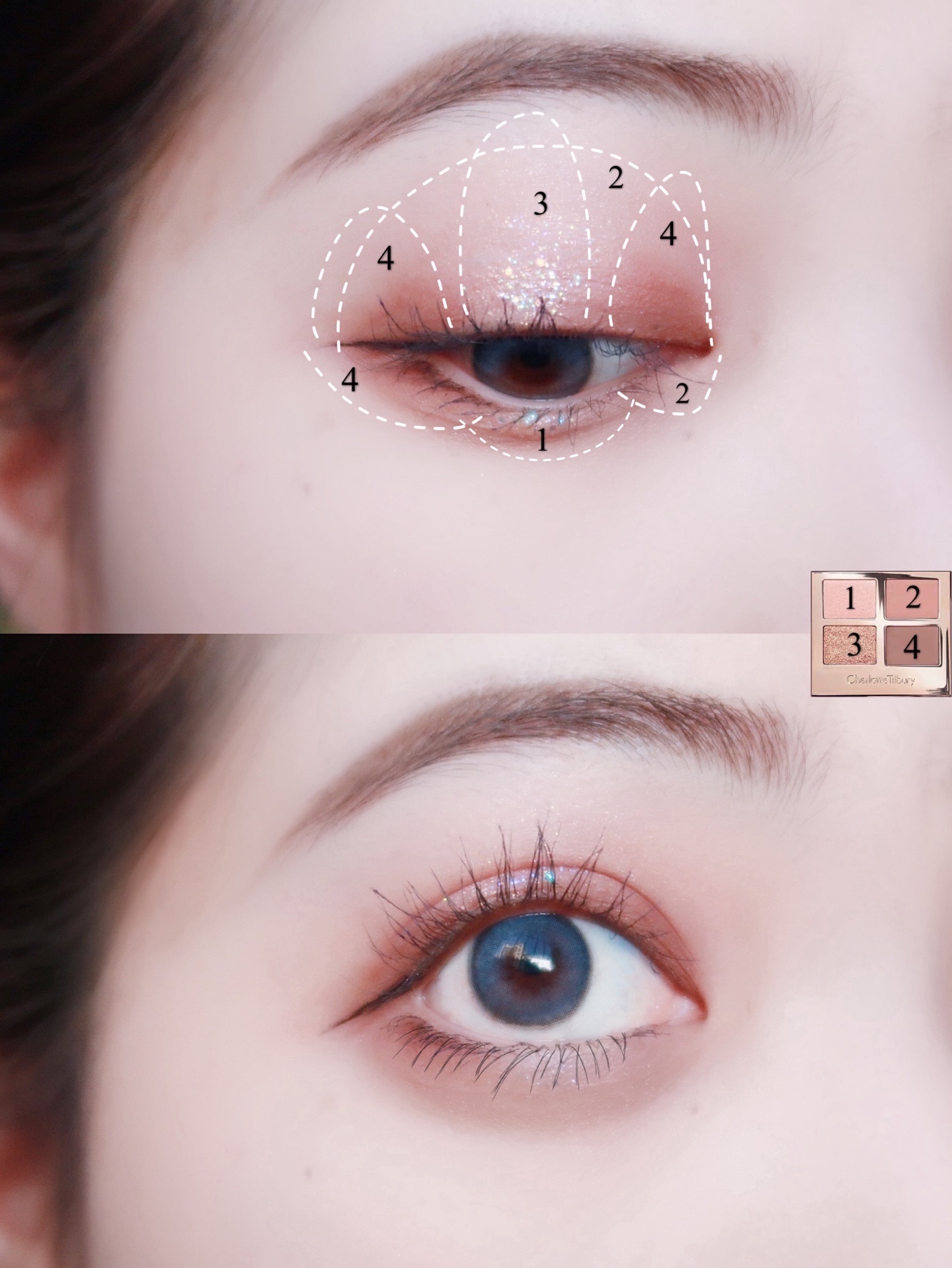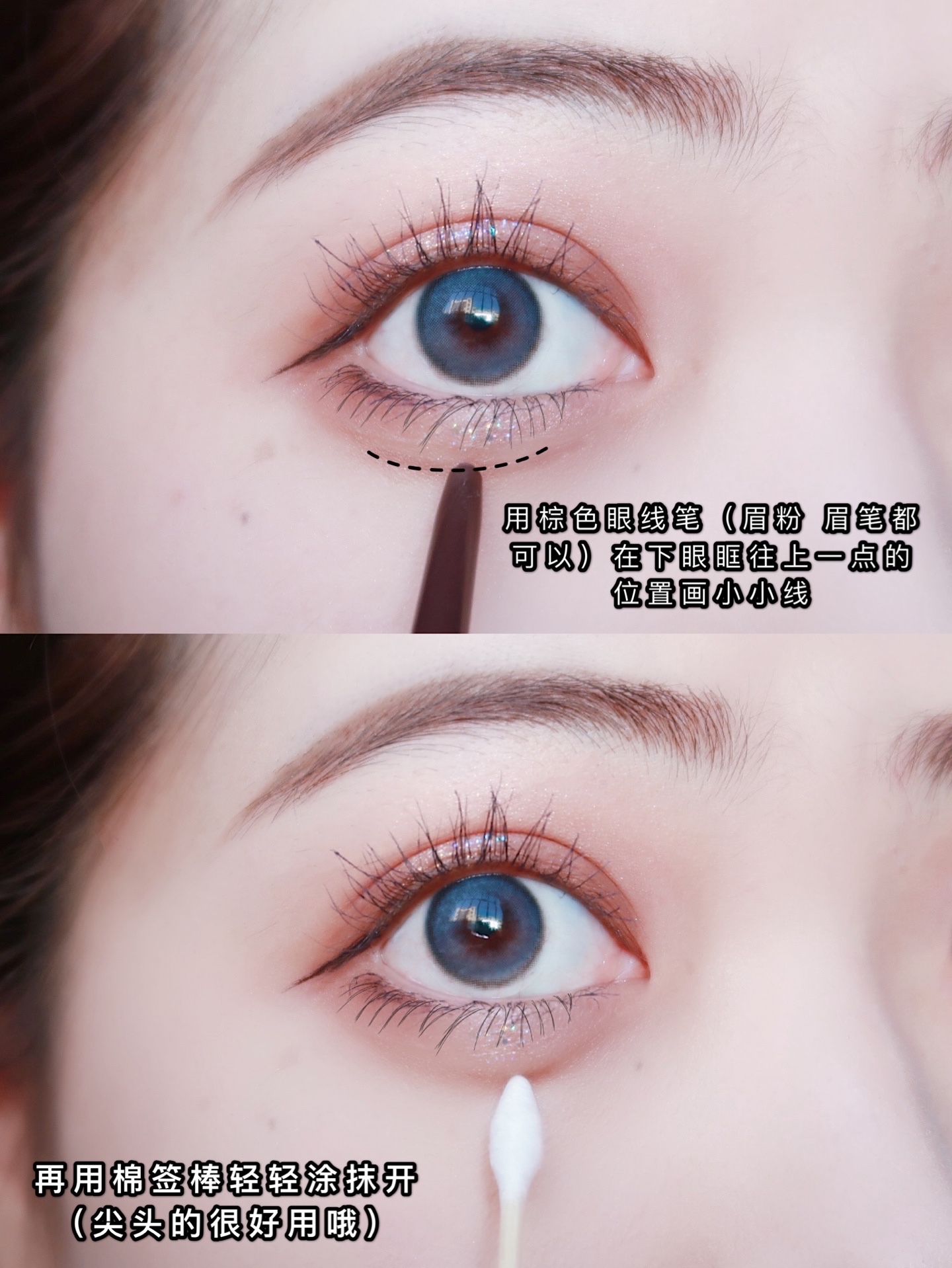 3️⃣选粉棕,大地色系画眼影(教程如图)