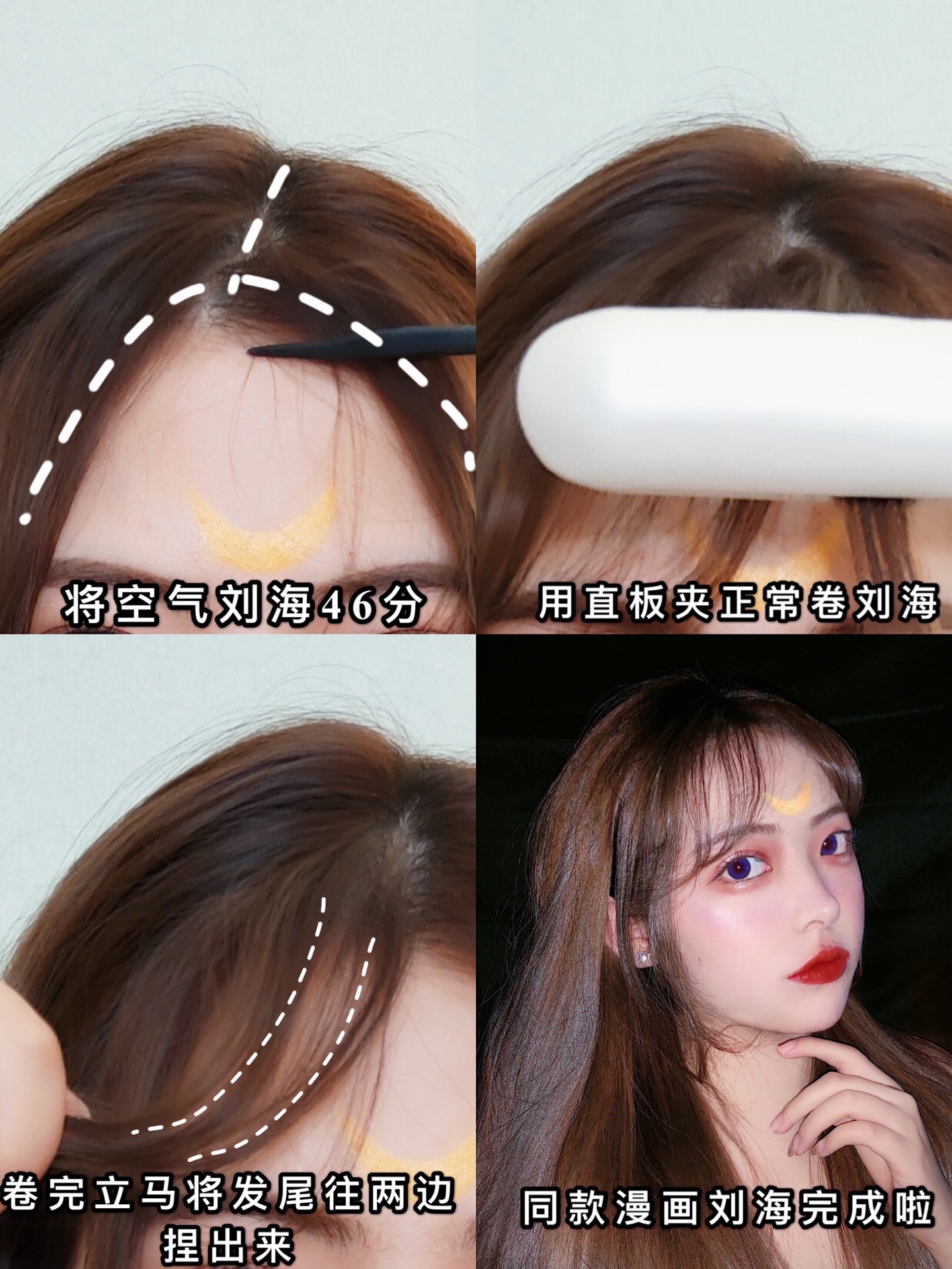 👱🏻♀️👱🏻♀️👱🏻♀️漫画刘海:你们问我n次的刘海,其实就是空气刘海长长一些(不会剪的找Tony!不要自己剪毁啦)46分然后用直板夹卷一下。发尾处往两边翻即可!其实如果短点就是美少女战士的漫画刘海啦~