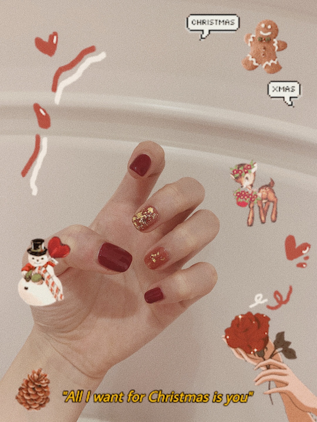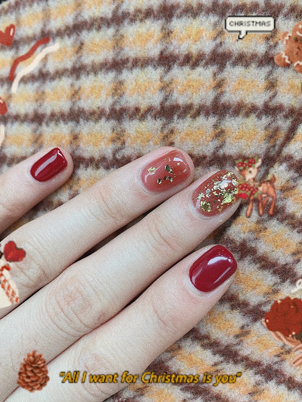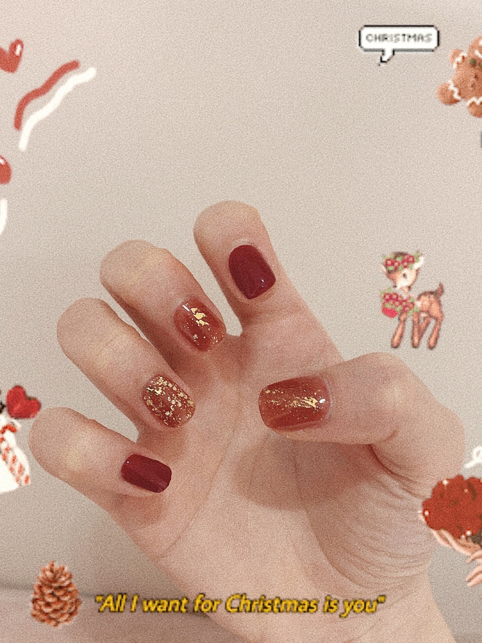 圣诞美甲🎄酒红➕金箔新年美甲推荐✨