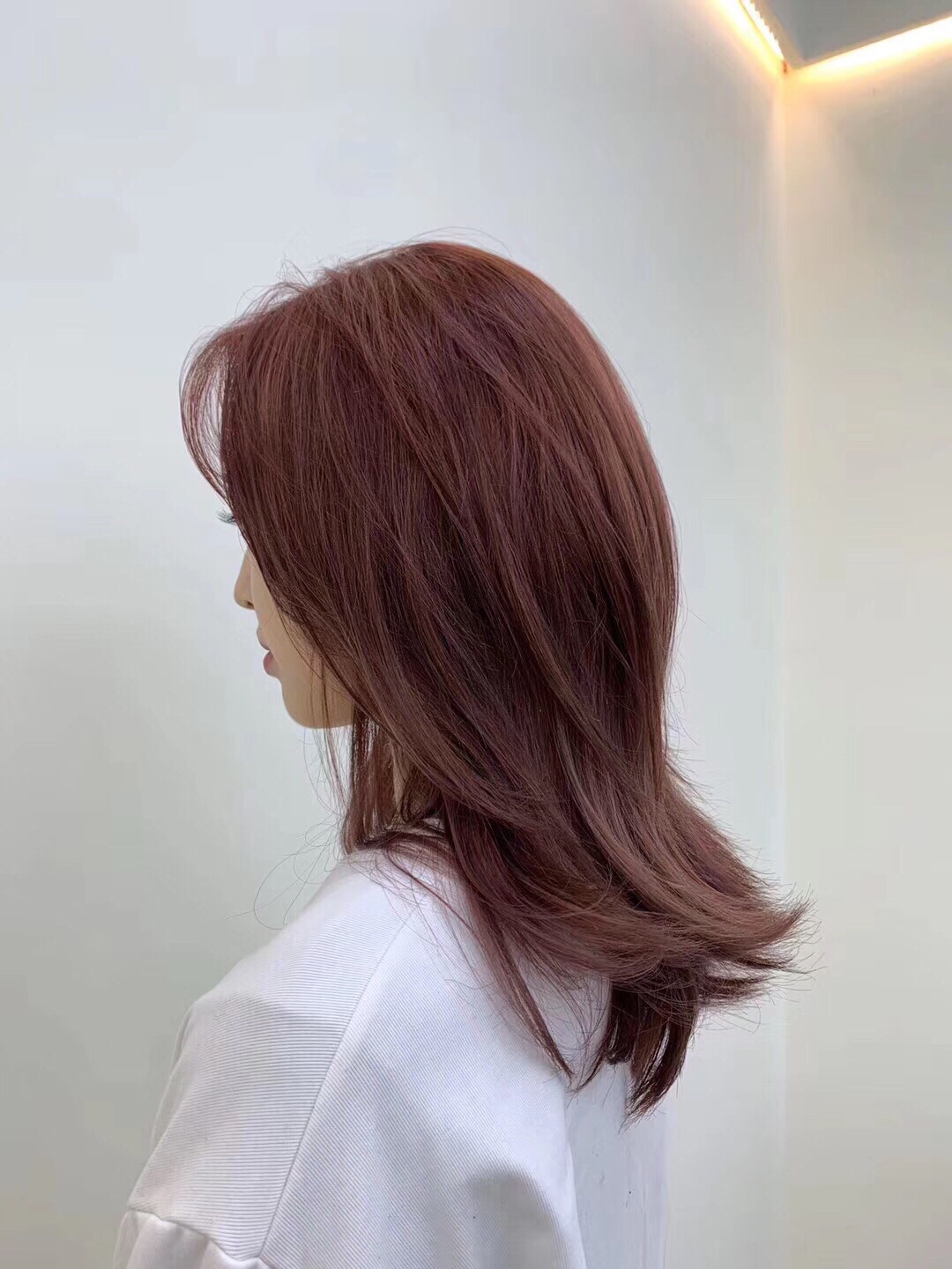 在室内就是玫瑰棕色会自然一些,我觉得比纯粉色头发耐看很多也更日常,这个颜色是需要漂的。