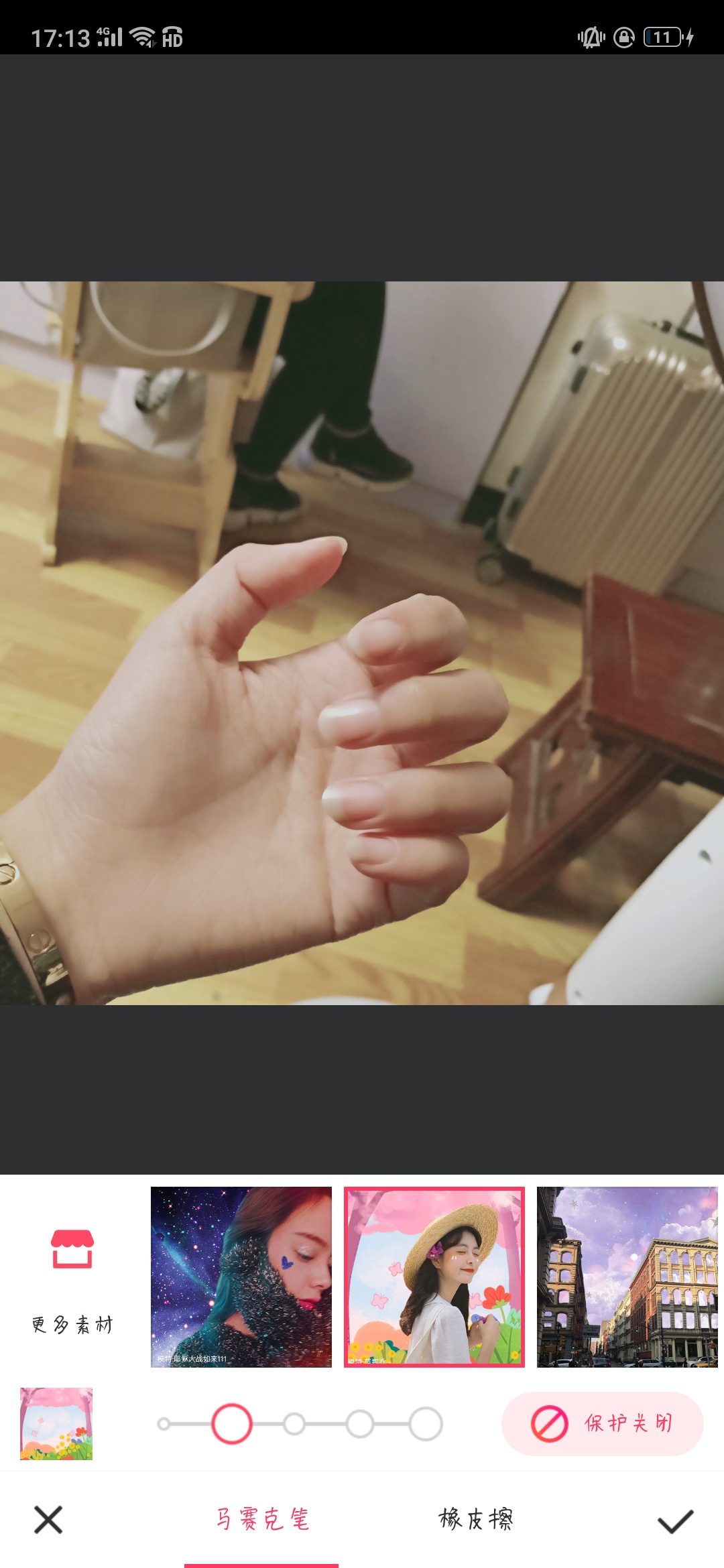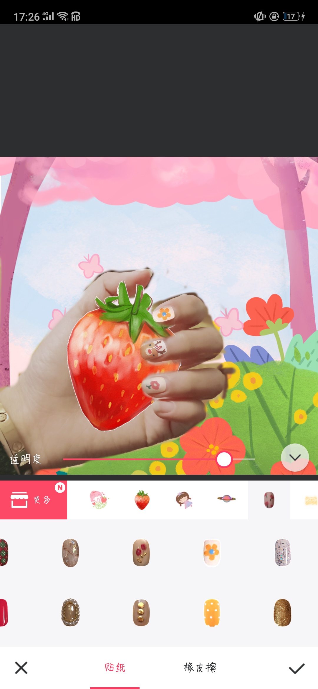 ③:点开贴纸,选择自己喜欢的指甲贴并调整大小