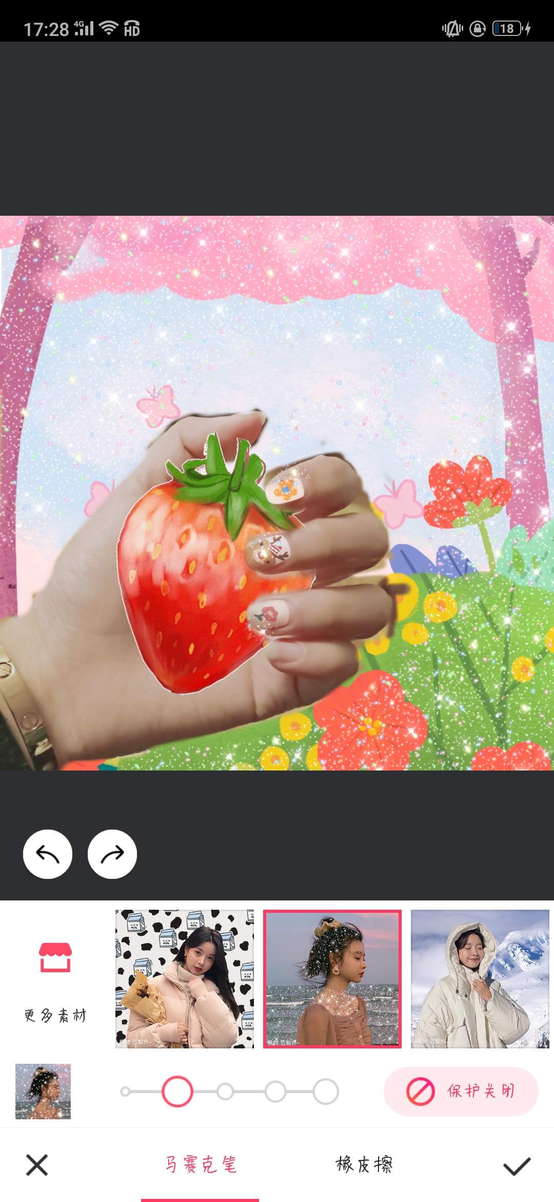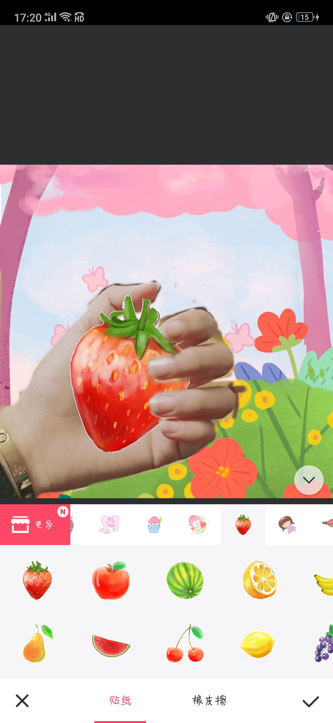 ②:点开贴纸,选择一种喜欢的水果,用透明度来擦除多余部分