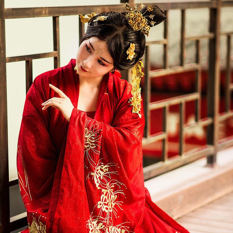 赤帝子彼岸花汉服女中国风超仙大袖衫魏晋风襦裙古装广袖流仙裙夏#凉心推物啦!# #汉服#