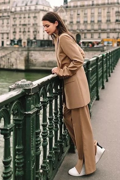 西裤与西装成套穿的搭配在2020年会依然流行,西装选择大一号的廓形款,更能营造出一种慵懒雅痞的chic style。