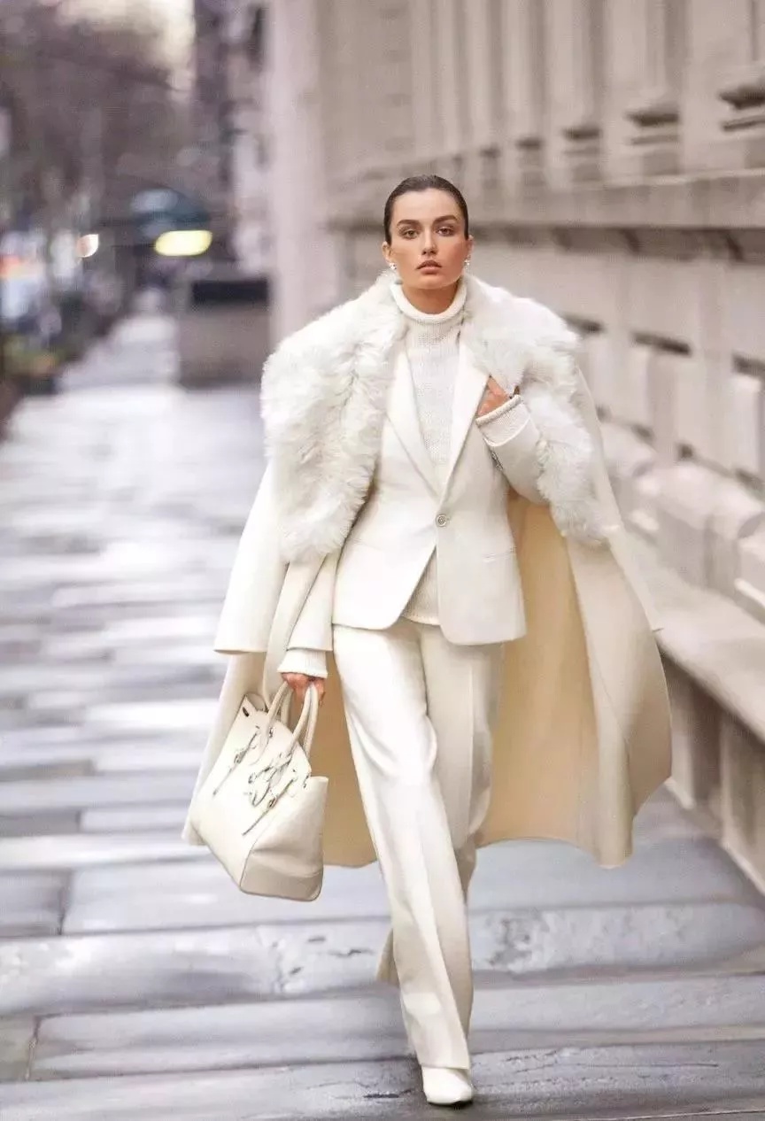 白色、奶油色西服套装似乎自带柔光板,将女人高贵中透着的柔美演绎的淋漓尽致。