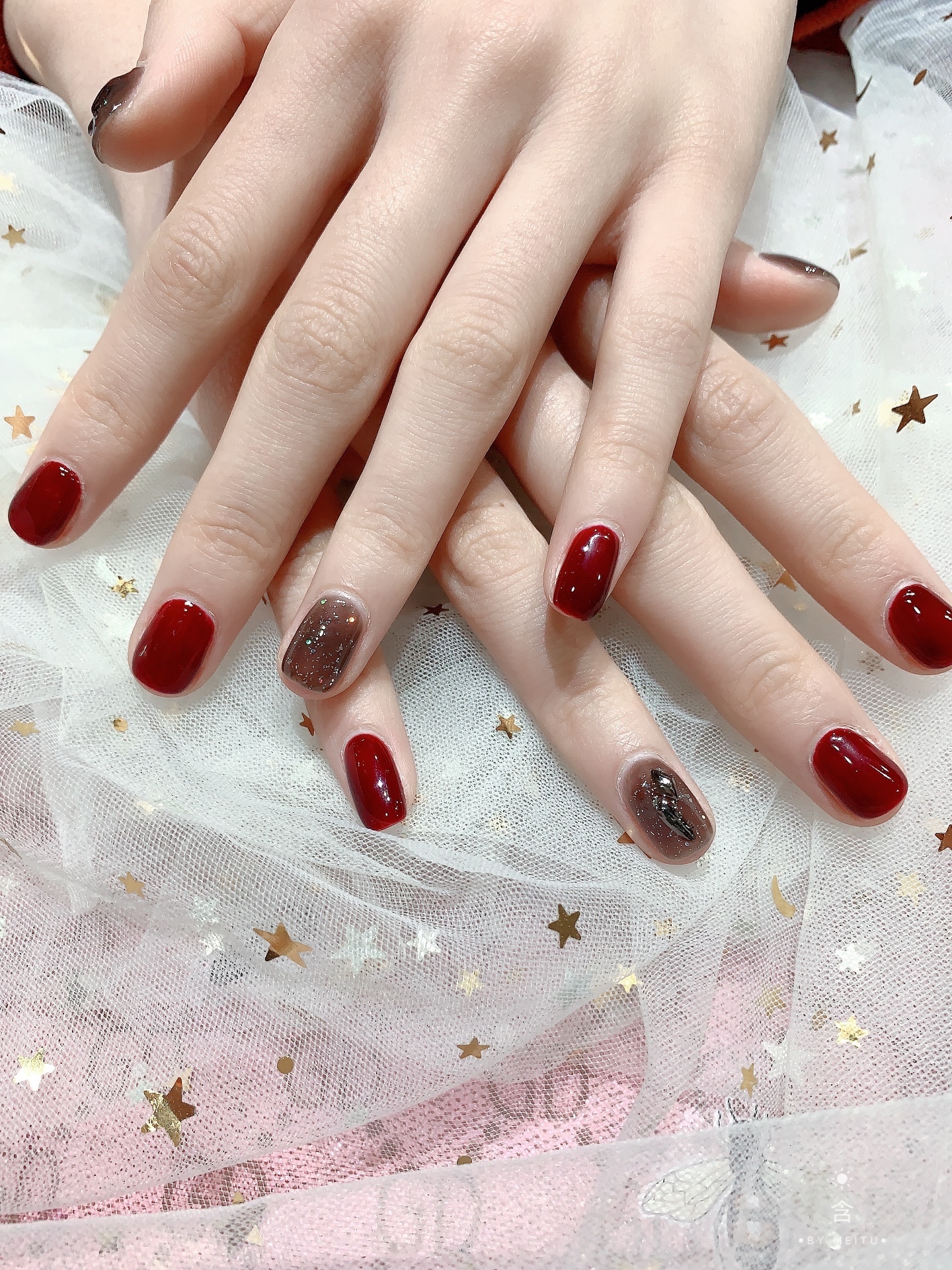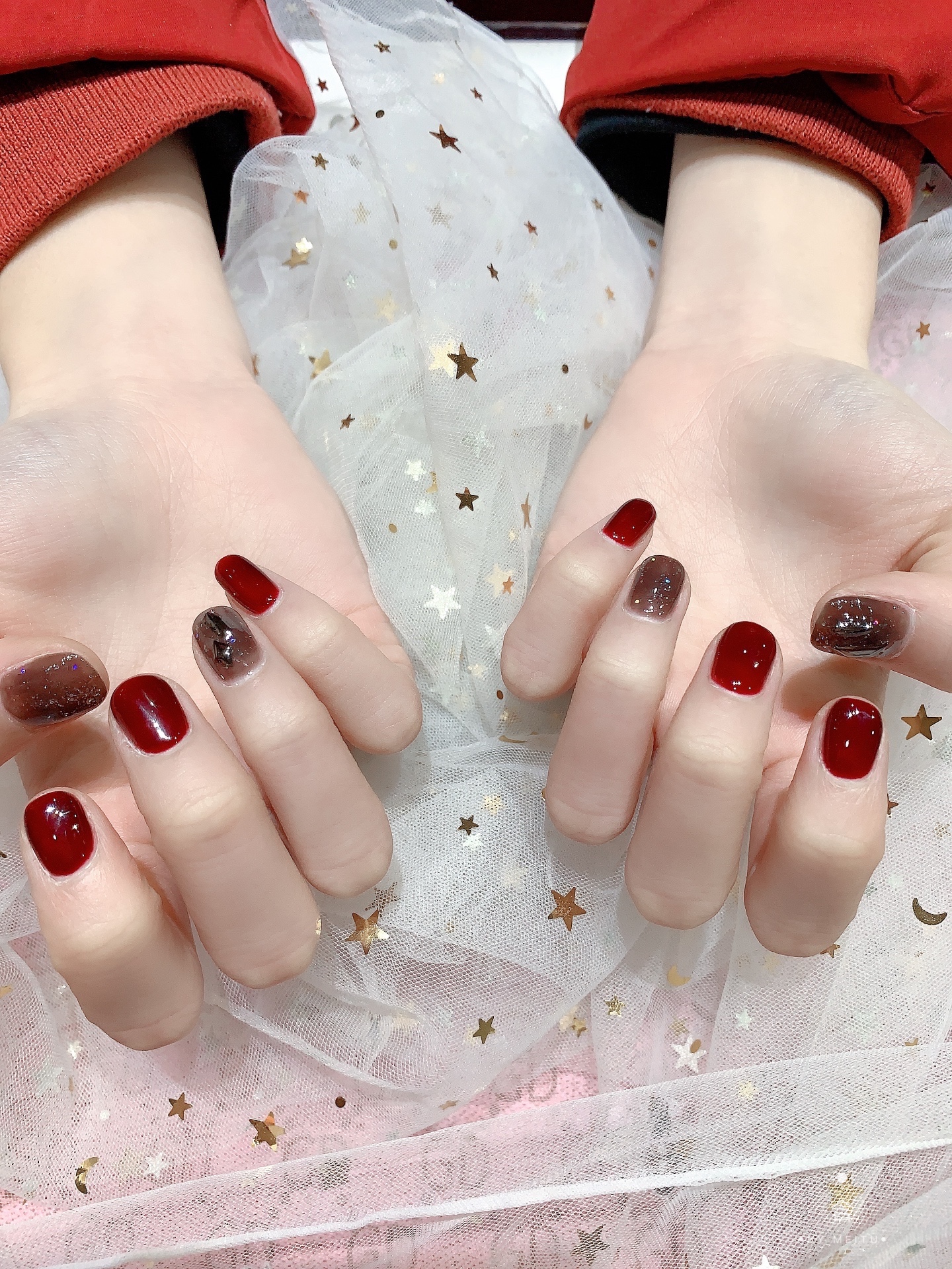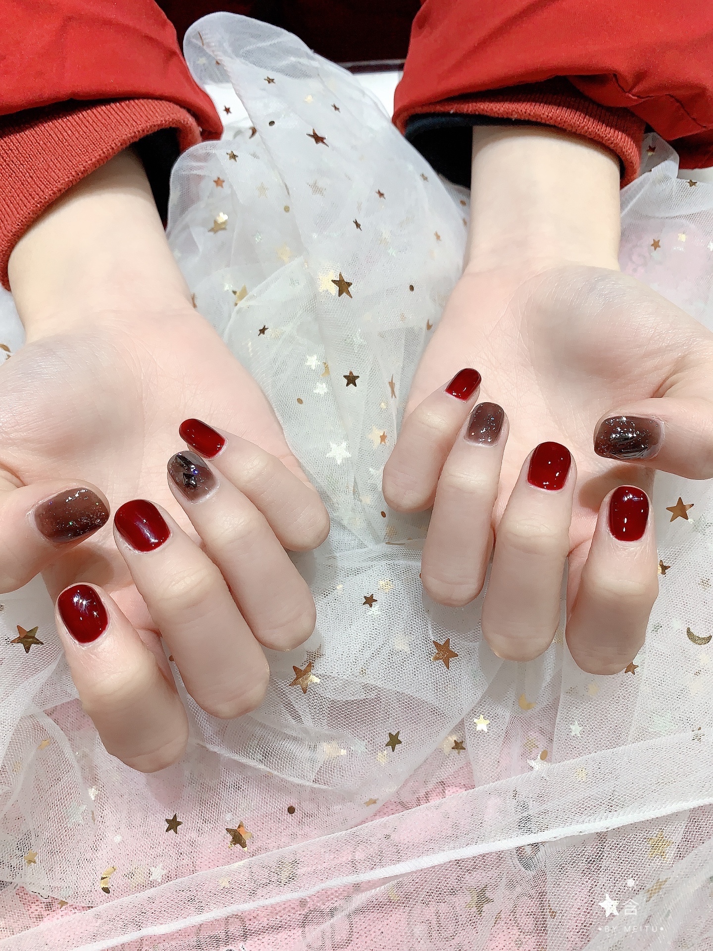 美甲控美甲新年款!红色➕透黑很大气的颜色!显白美甲新年美甲-美图社区-美图秀秀