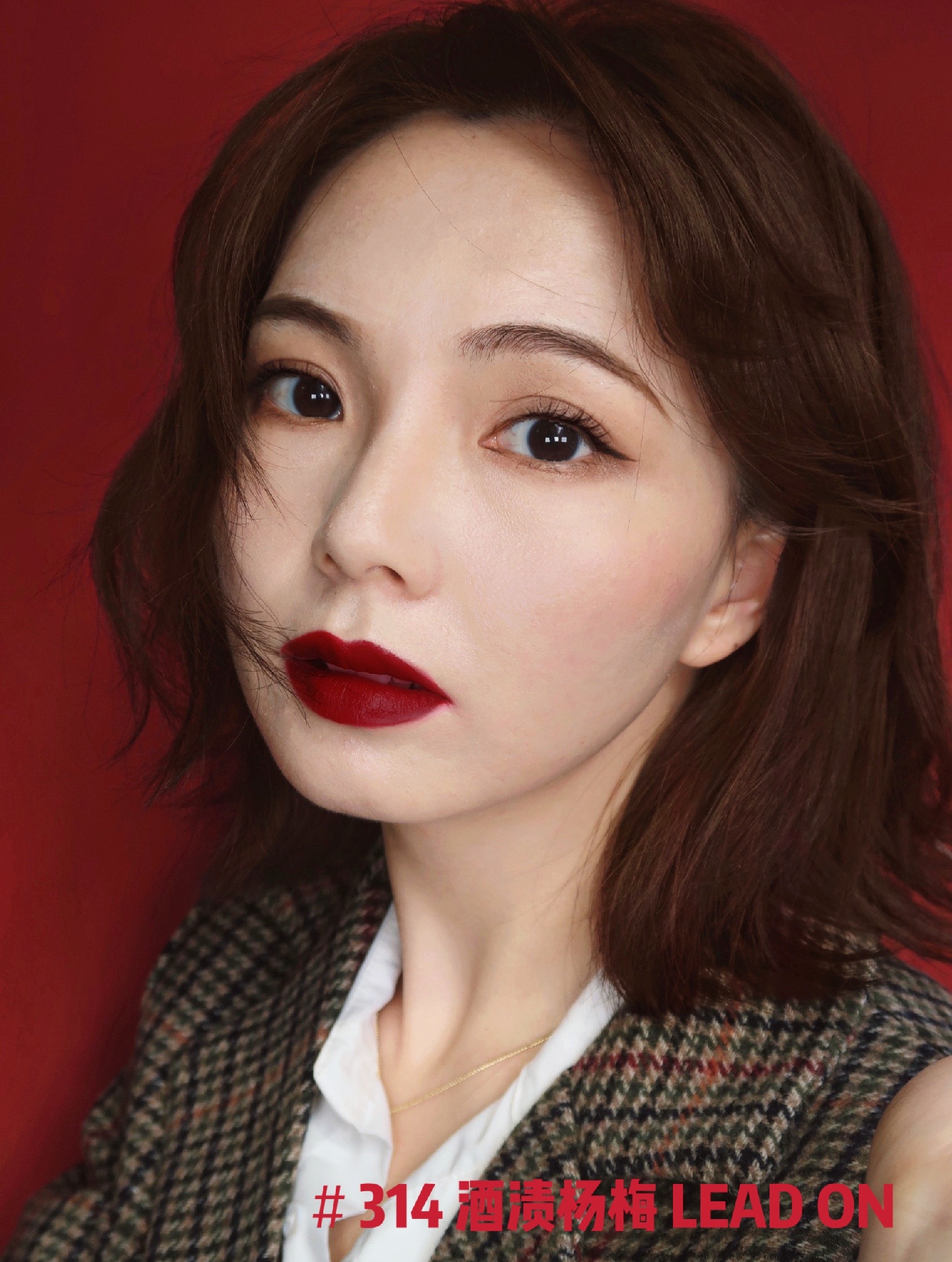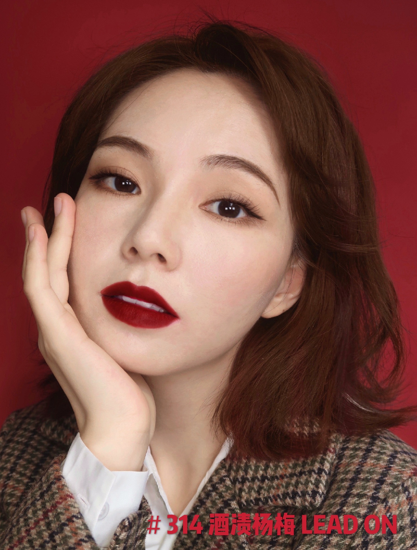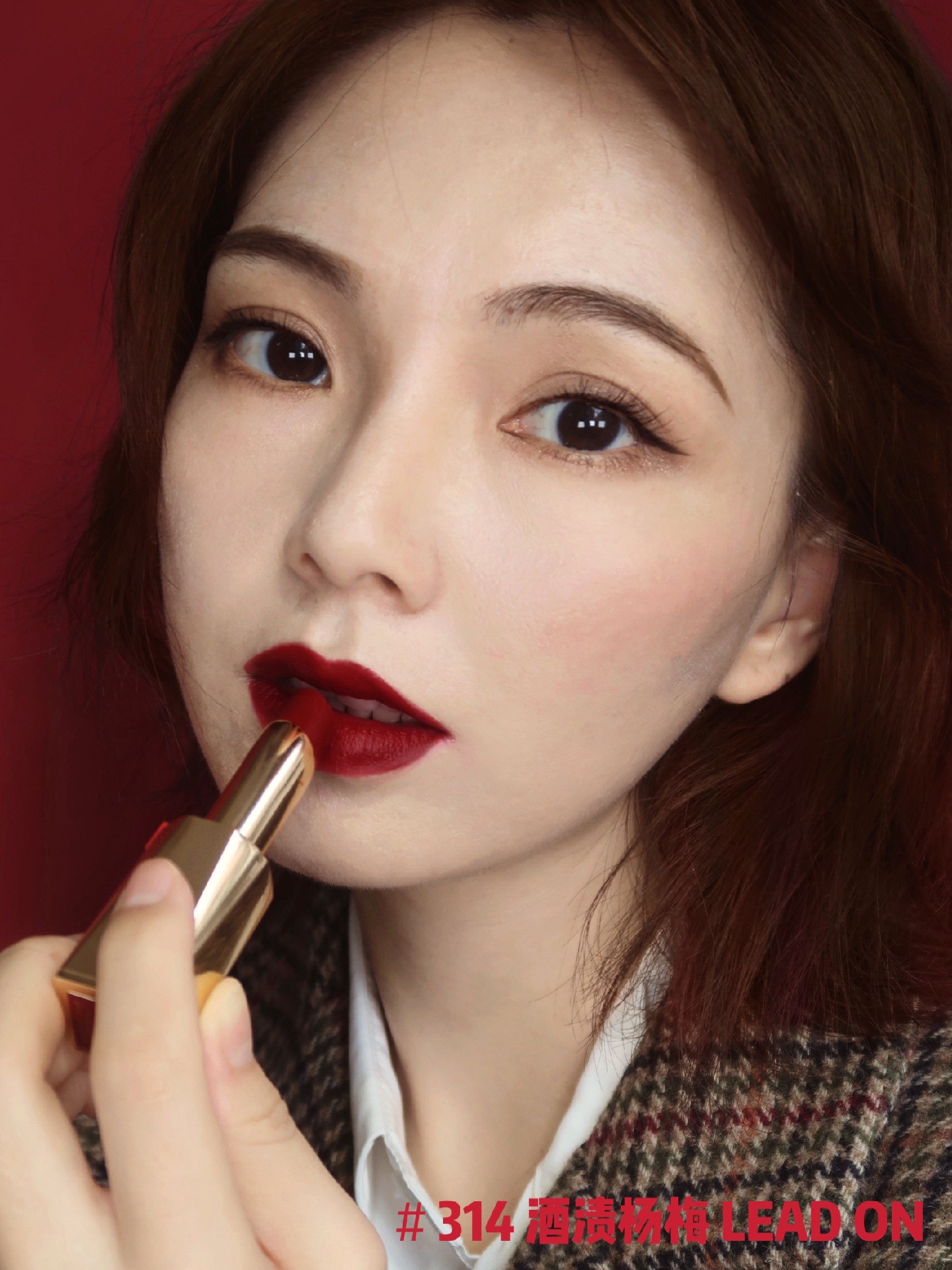 是挂在唇边的浓郁杨梅酒,上唇自带复古画报女郎感的高级酒红色。