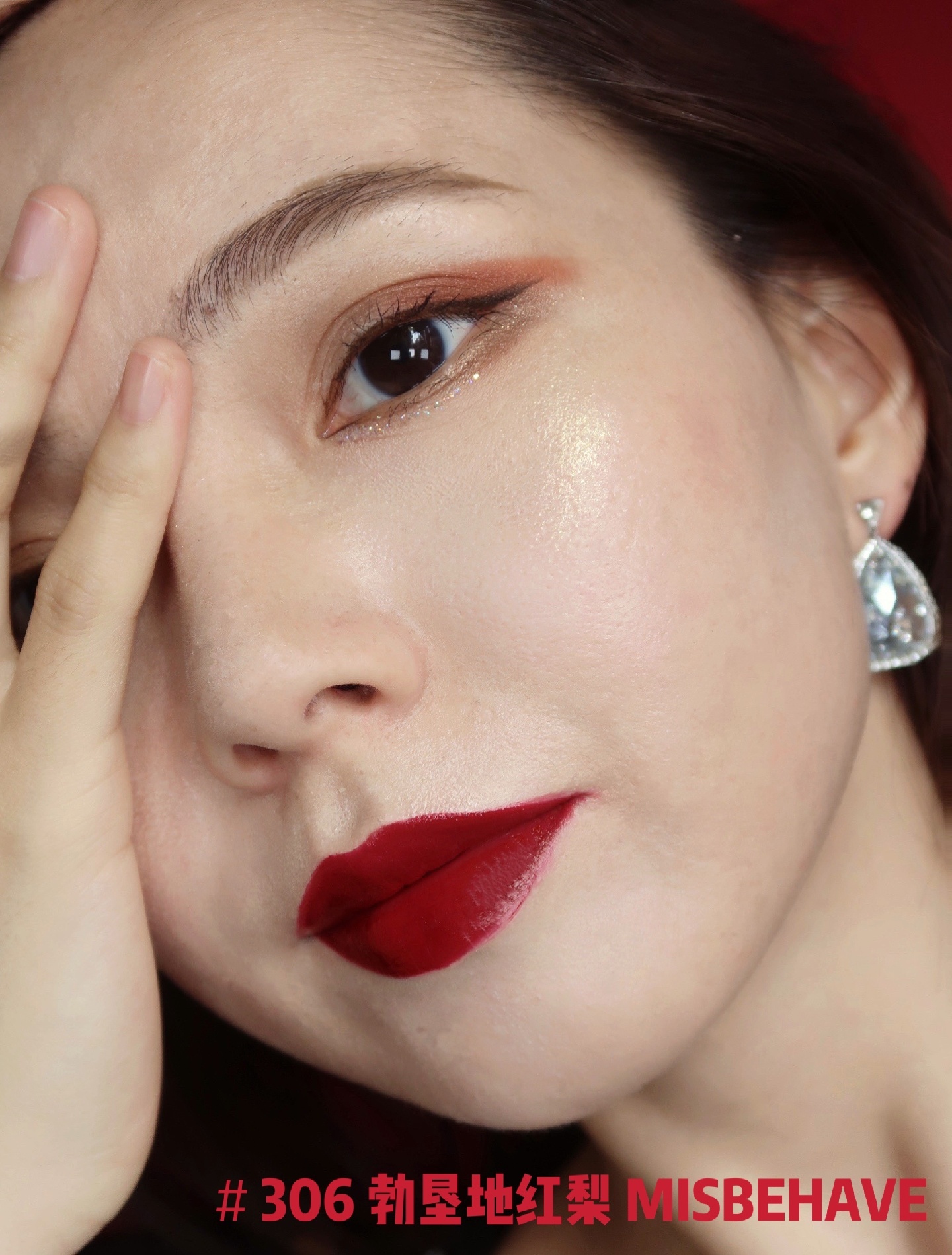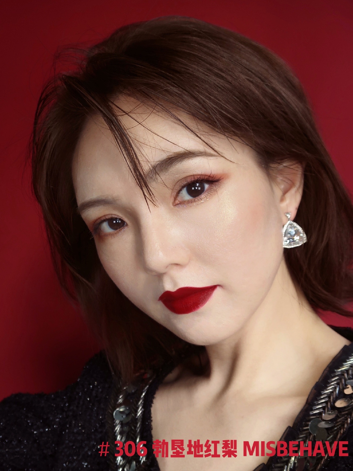 🔹另一款适合参加秋冬派对的妆容使用了:雅诗兰黛306 勃垦地红梨色 MISBEHAVE