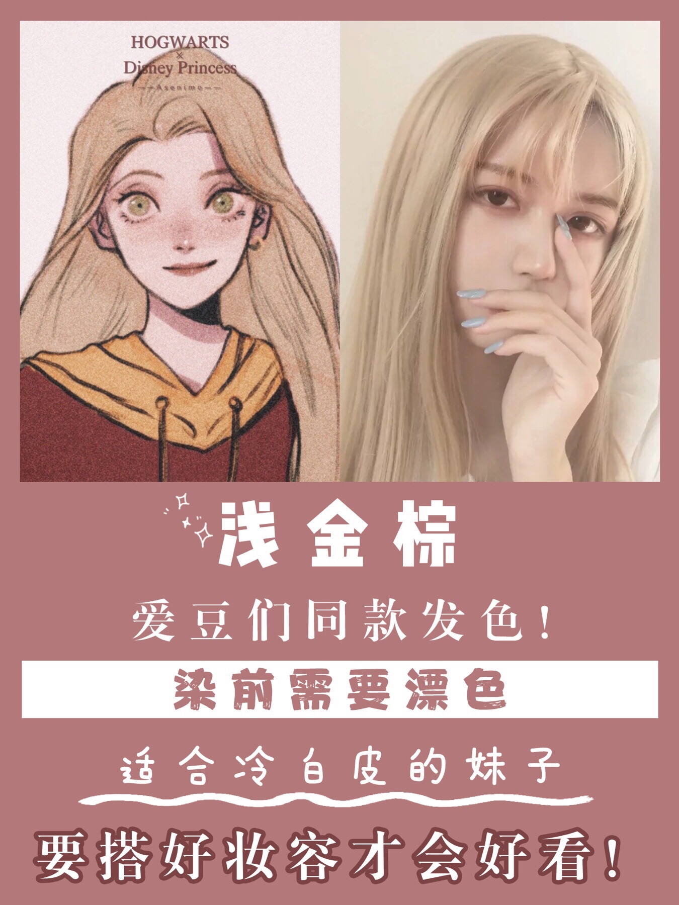 爱豆们同款发色!染前需要漂色,适合冷白皮的妹子,要搭好妆容才会好看!