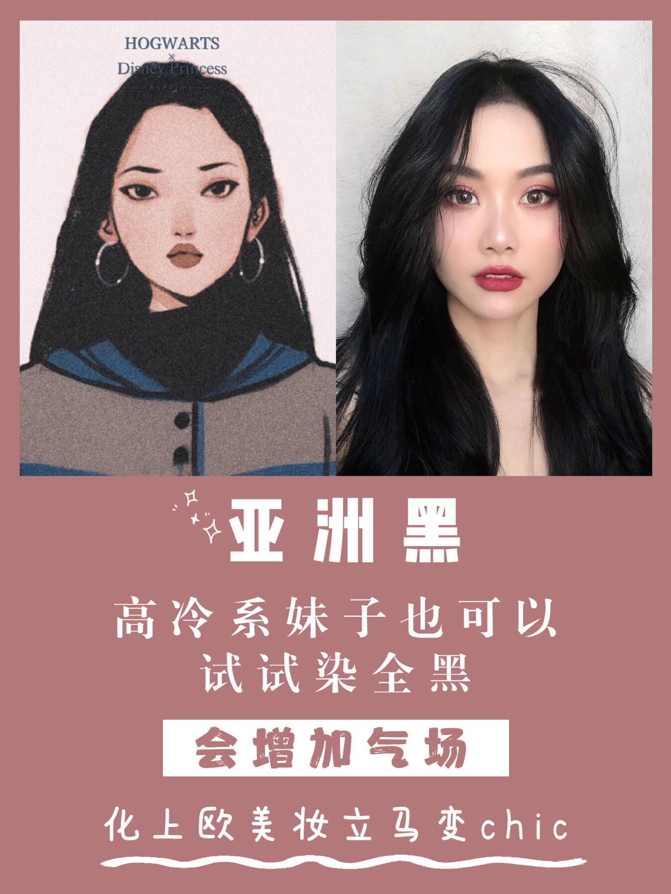 高冷系妹子也可以试试染全黑,会增加气场,化上欧美妆立马变chic