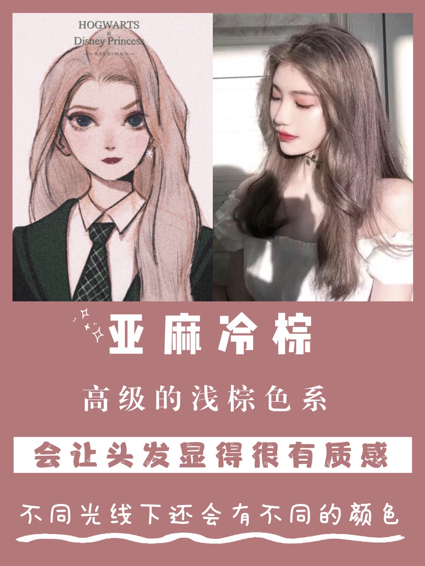 高级的浅棕色系,会让头发显得很有质感,不同光线下还会有不同的颜色