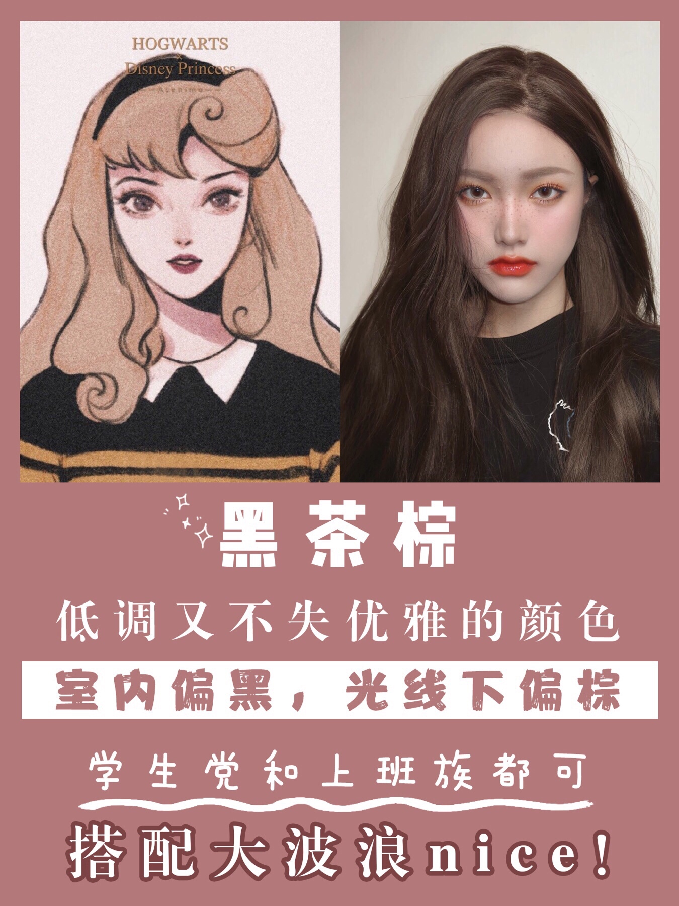 低调又不失优雅的颜色,室内偏黑,光线下偏棕,学生党和上班族都可,搭配大波浪nice!