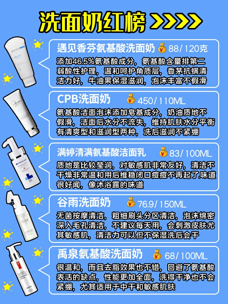 适合学生族的平价好用的洗面奶,敏感肌适合自己