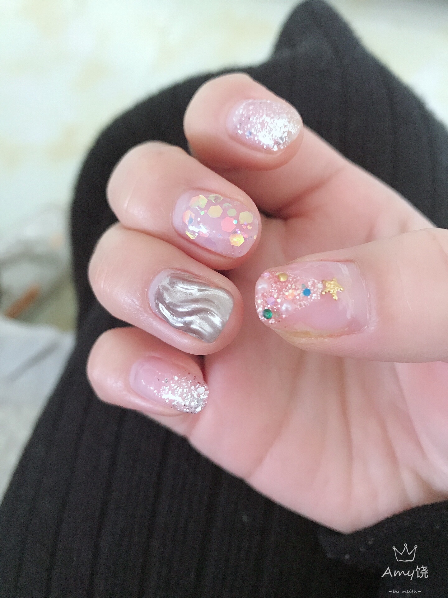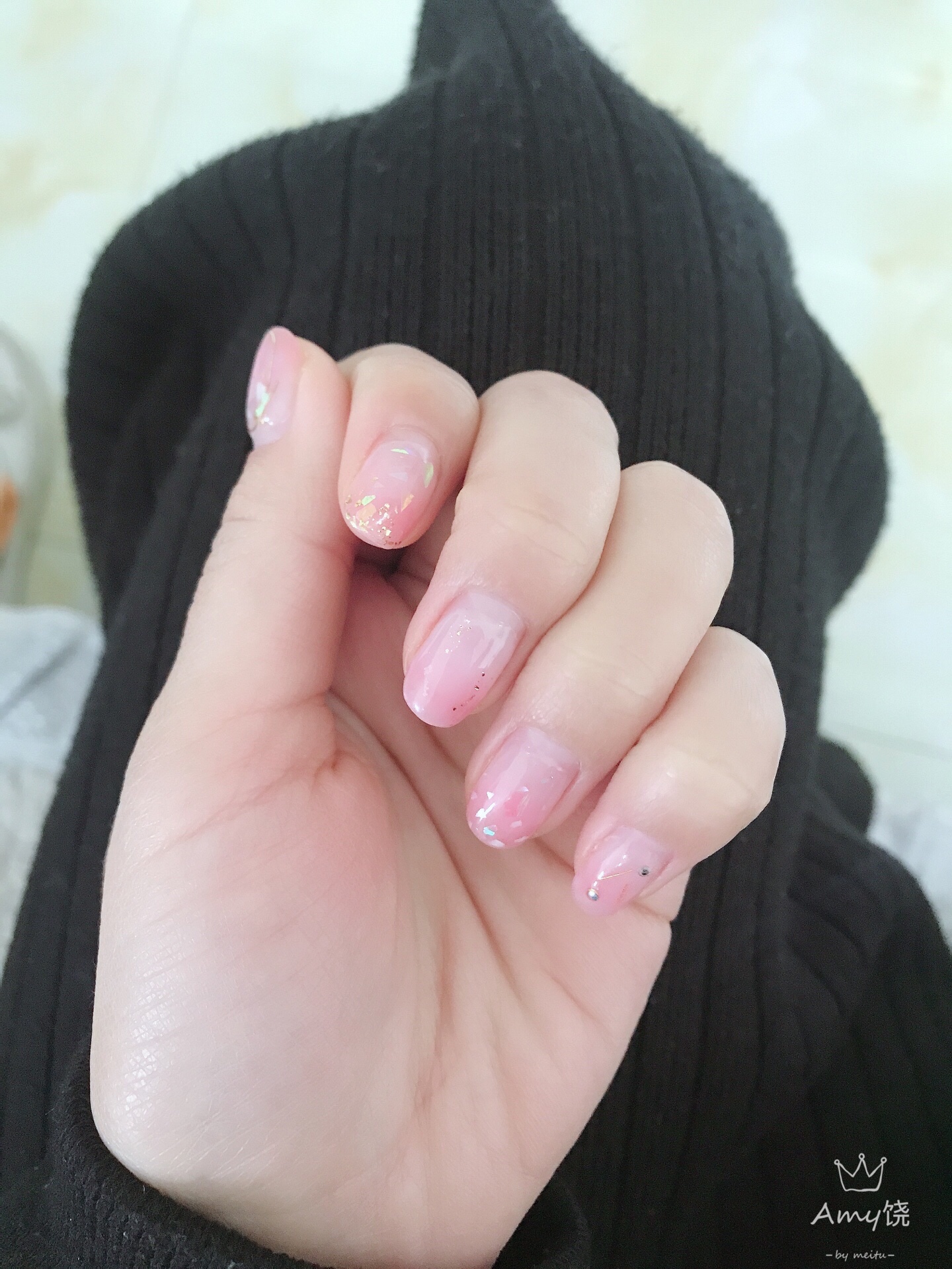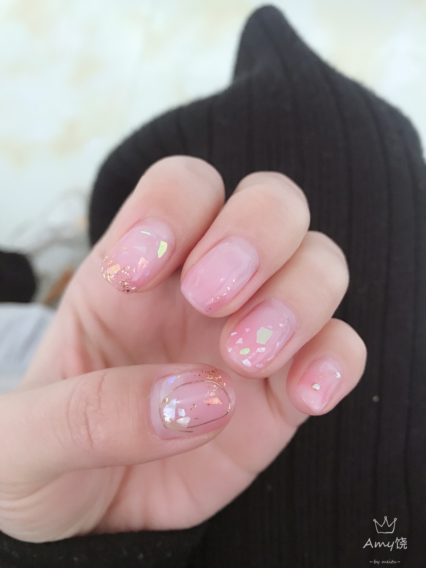 金箔加贝壳加晕染,什么颜色都可以搭配😜😜#美甲控#