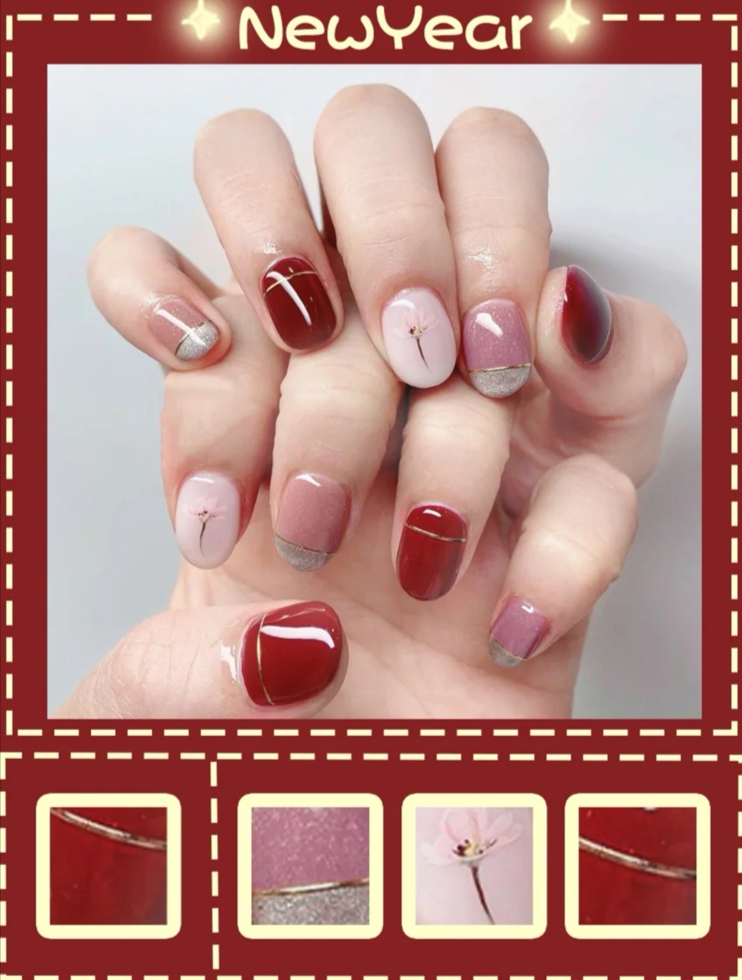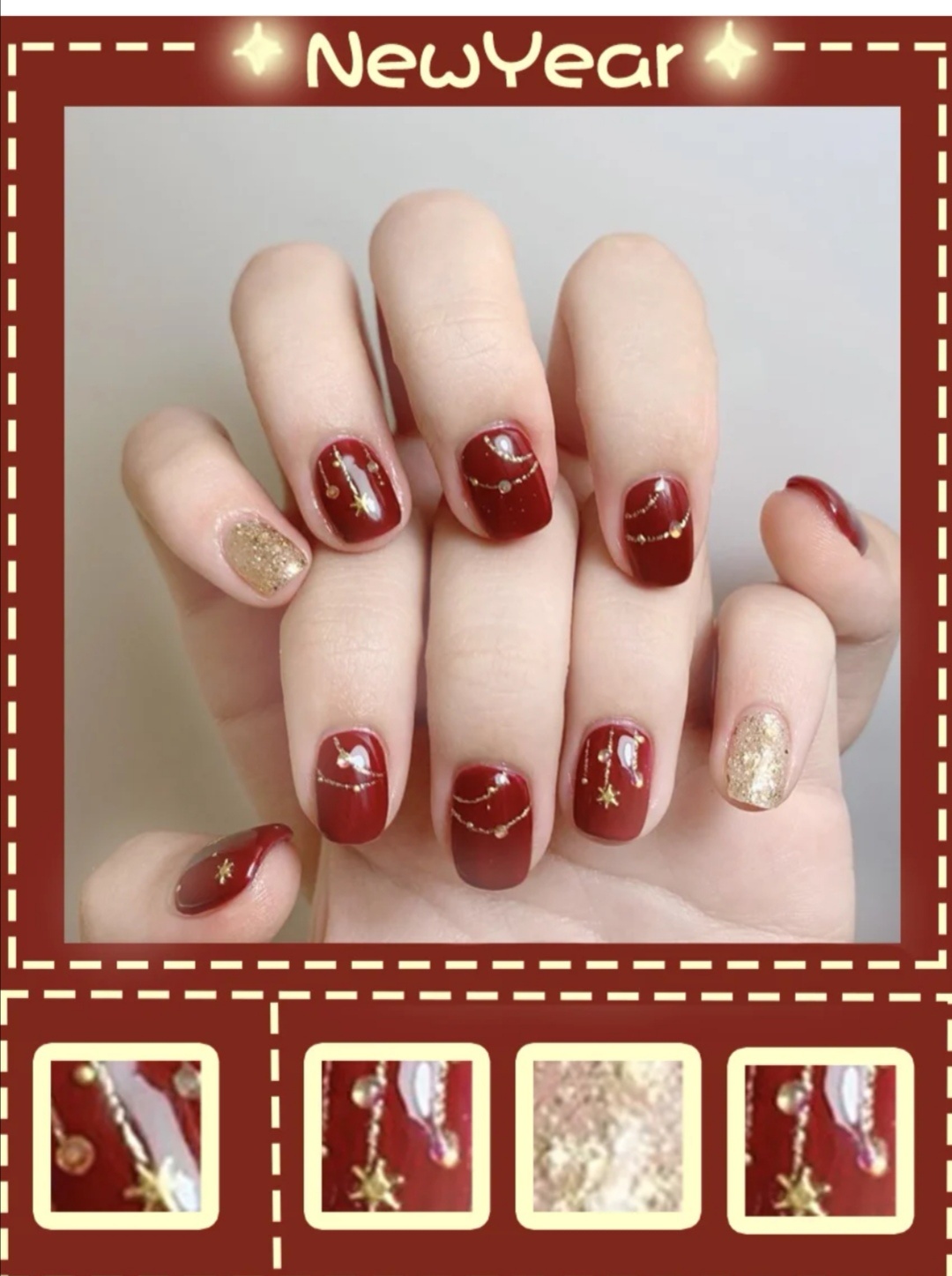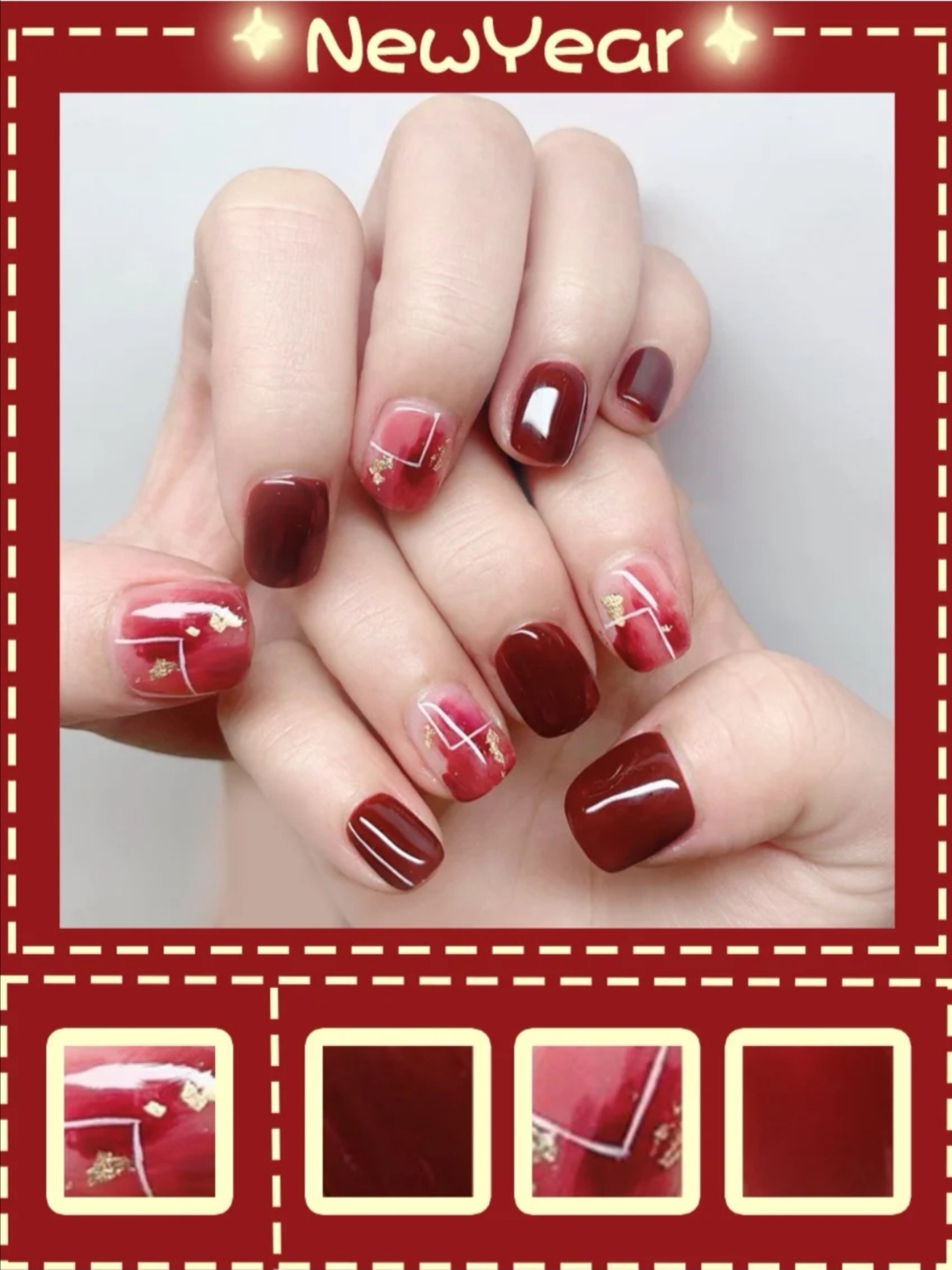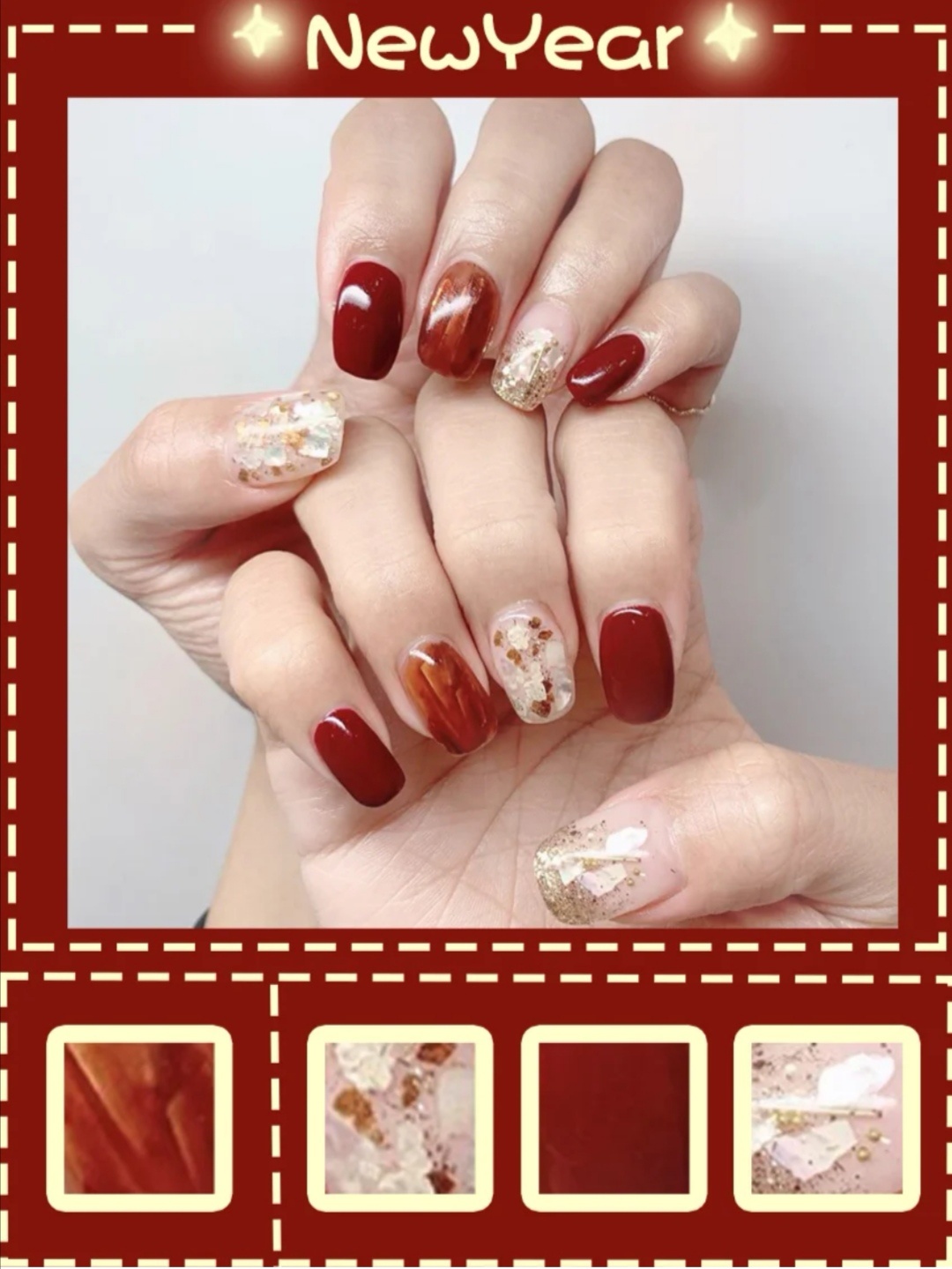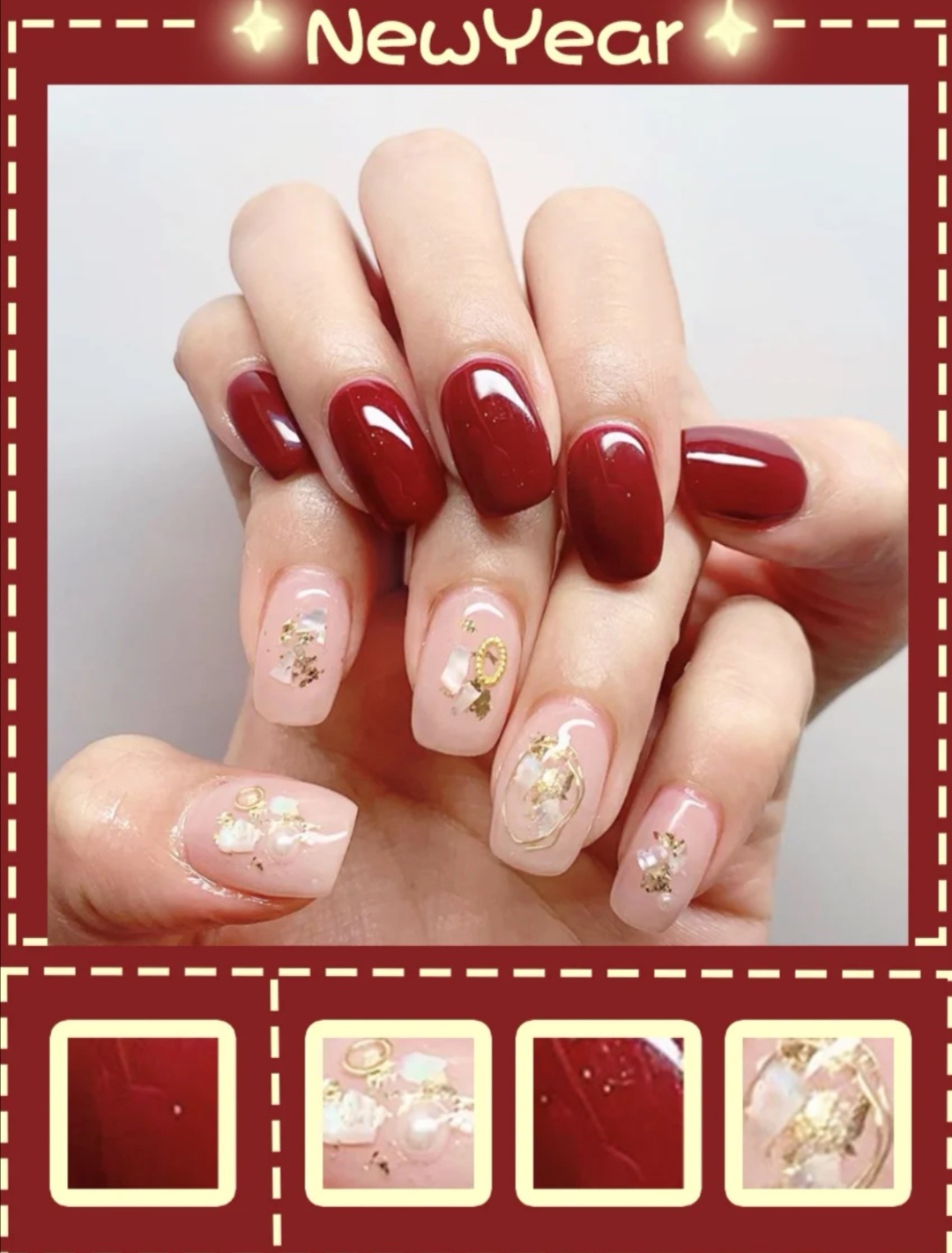 秋冬美甲|鼠年美甲| 红色系美甲| 气质美甲显 白|亮片美甲
