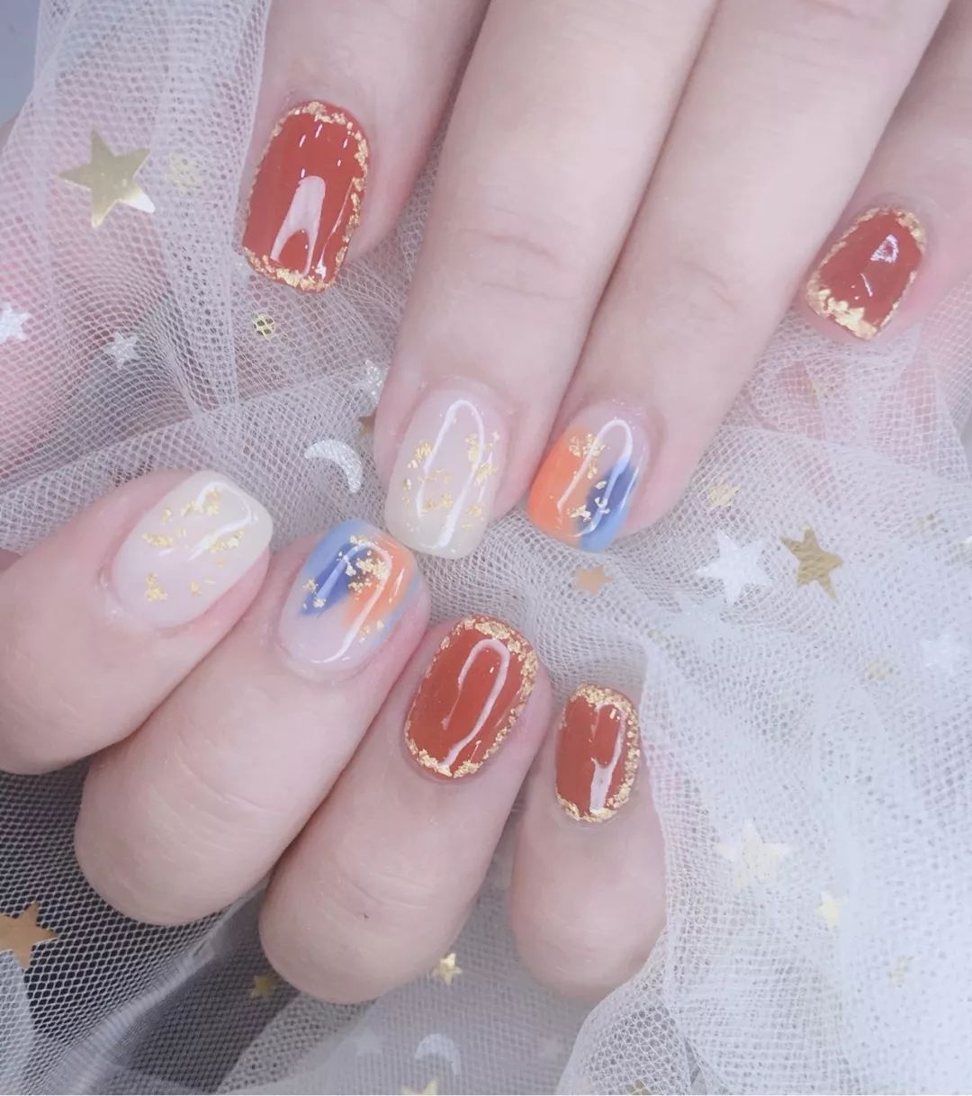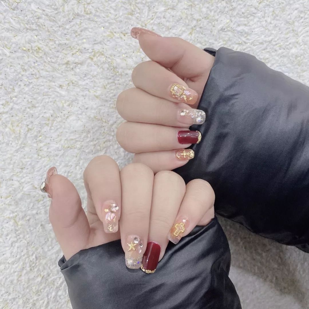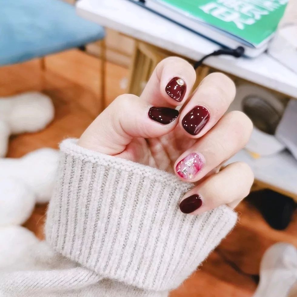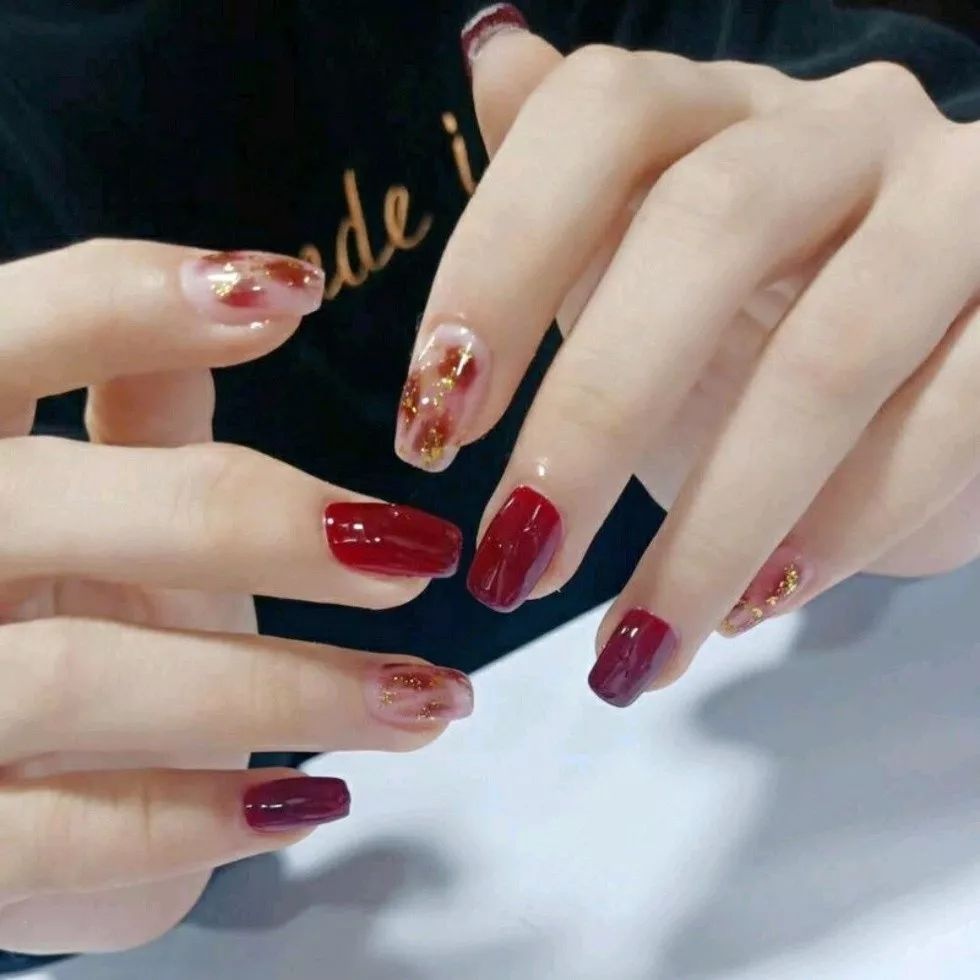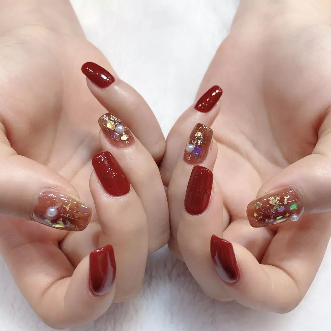 红色金箔甲美甲已更新#少女心美甲# #秋冬美甲# #美甲# #日系美甲# #美甲控#