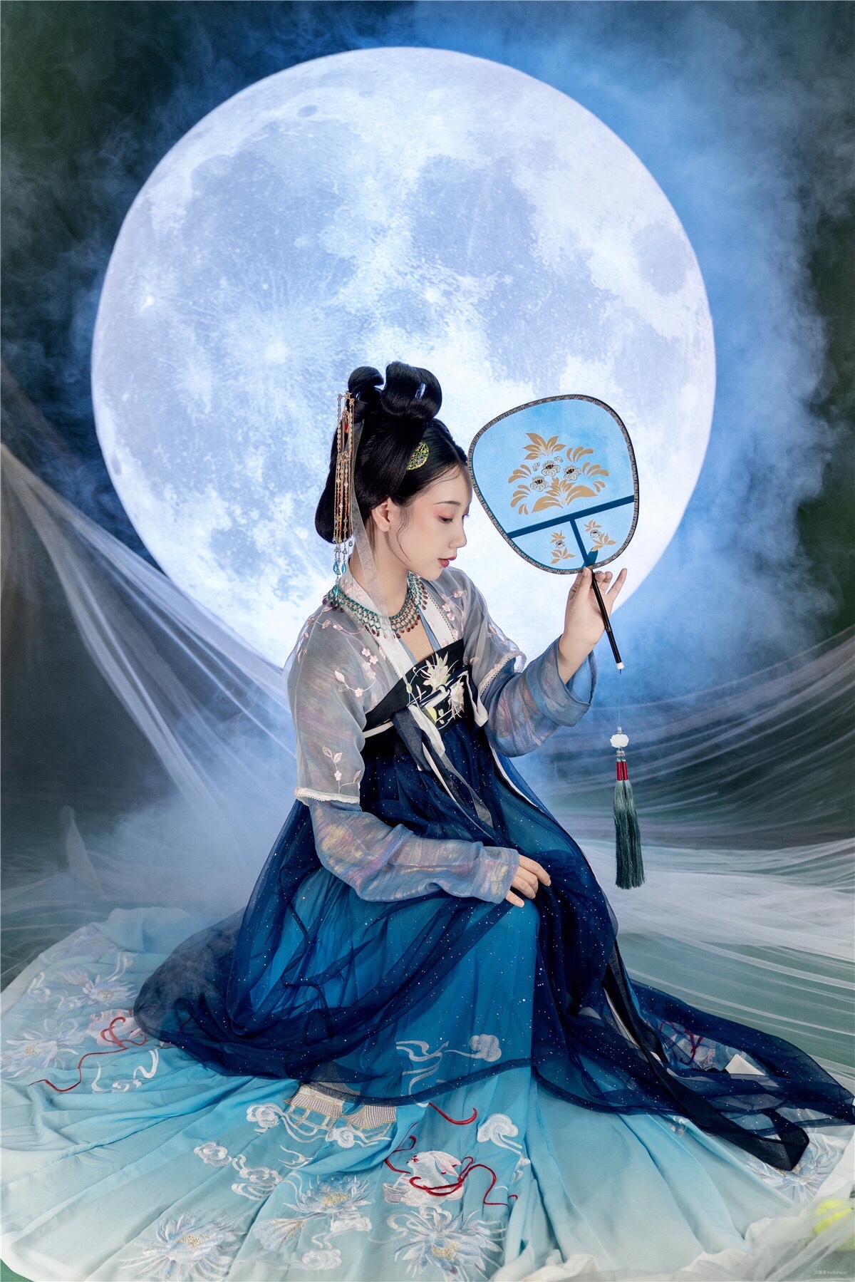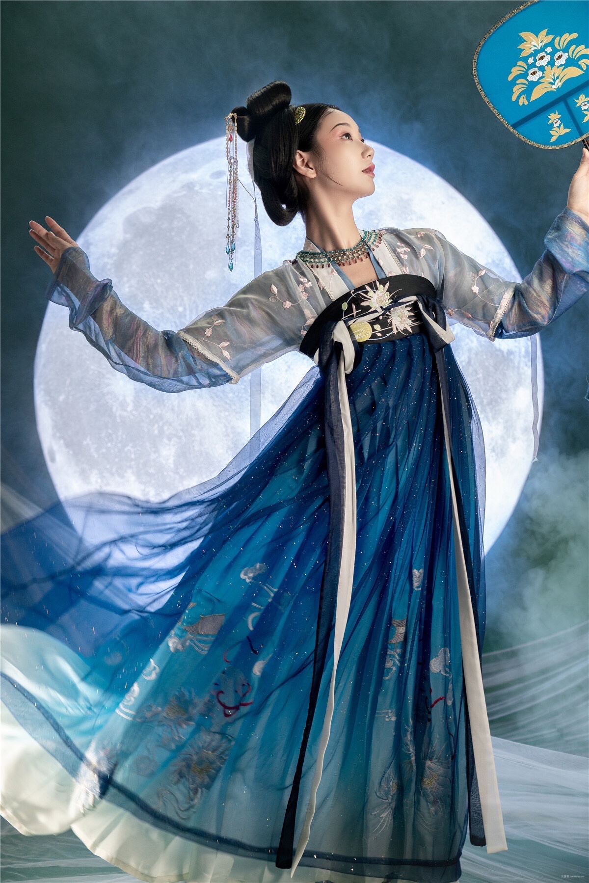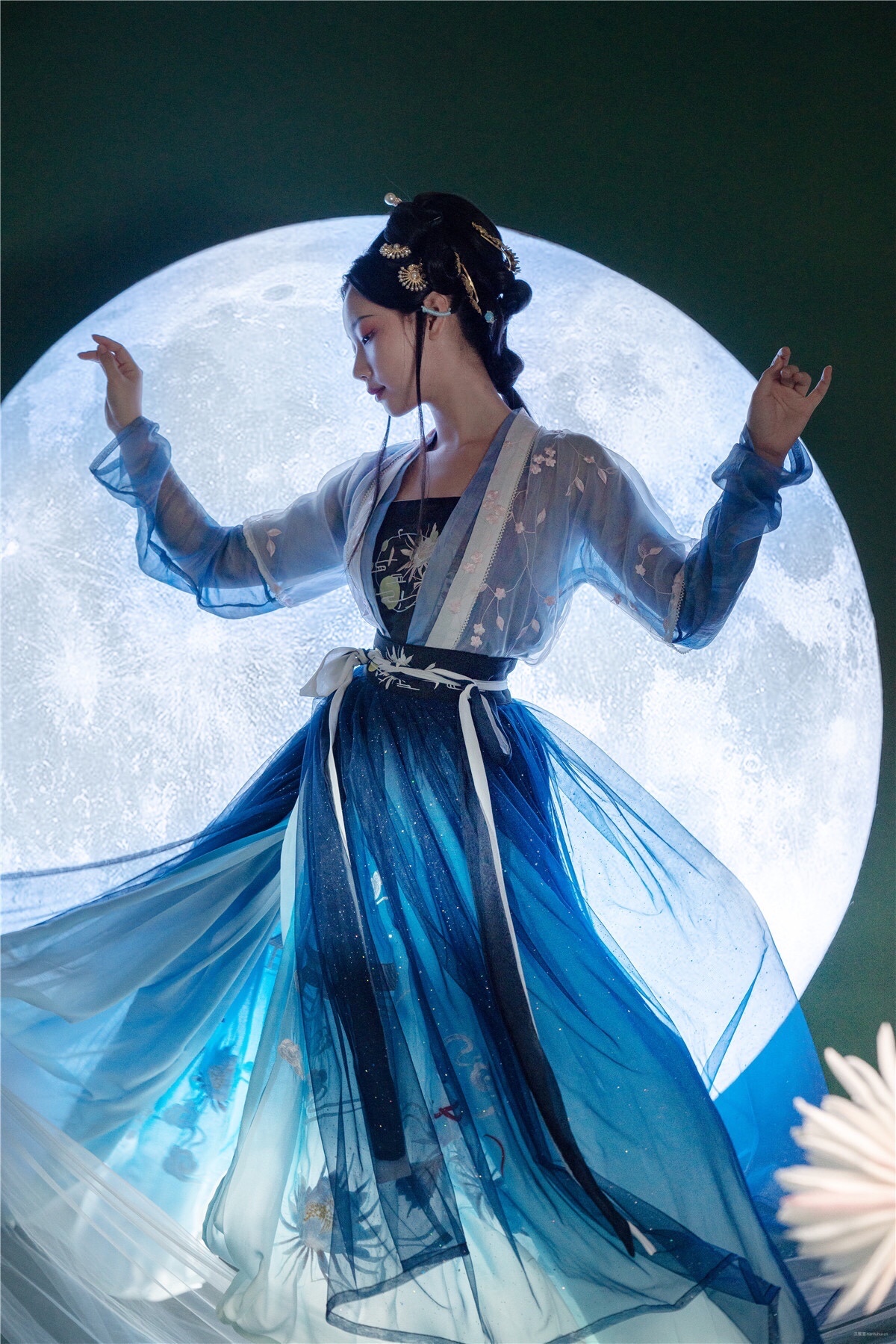 皎月当空,星河浩瀚,昙花怒放,美人当下。