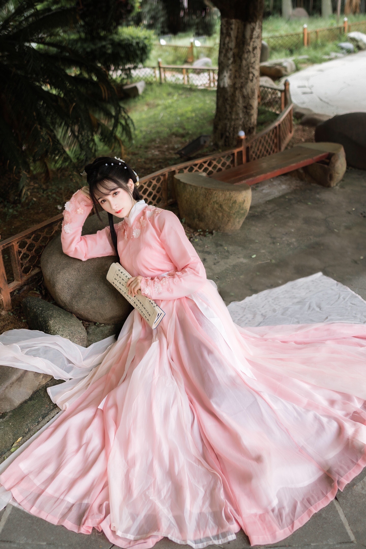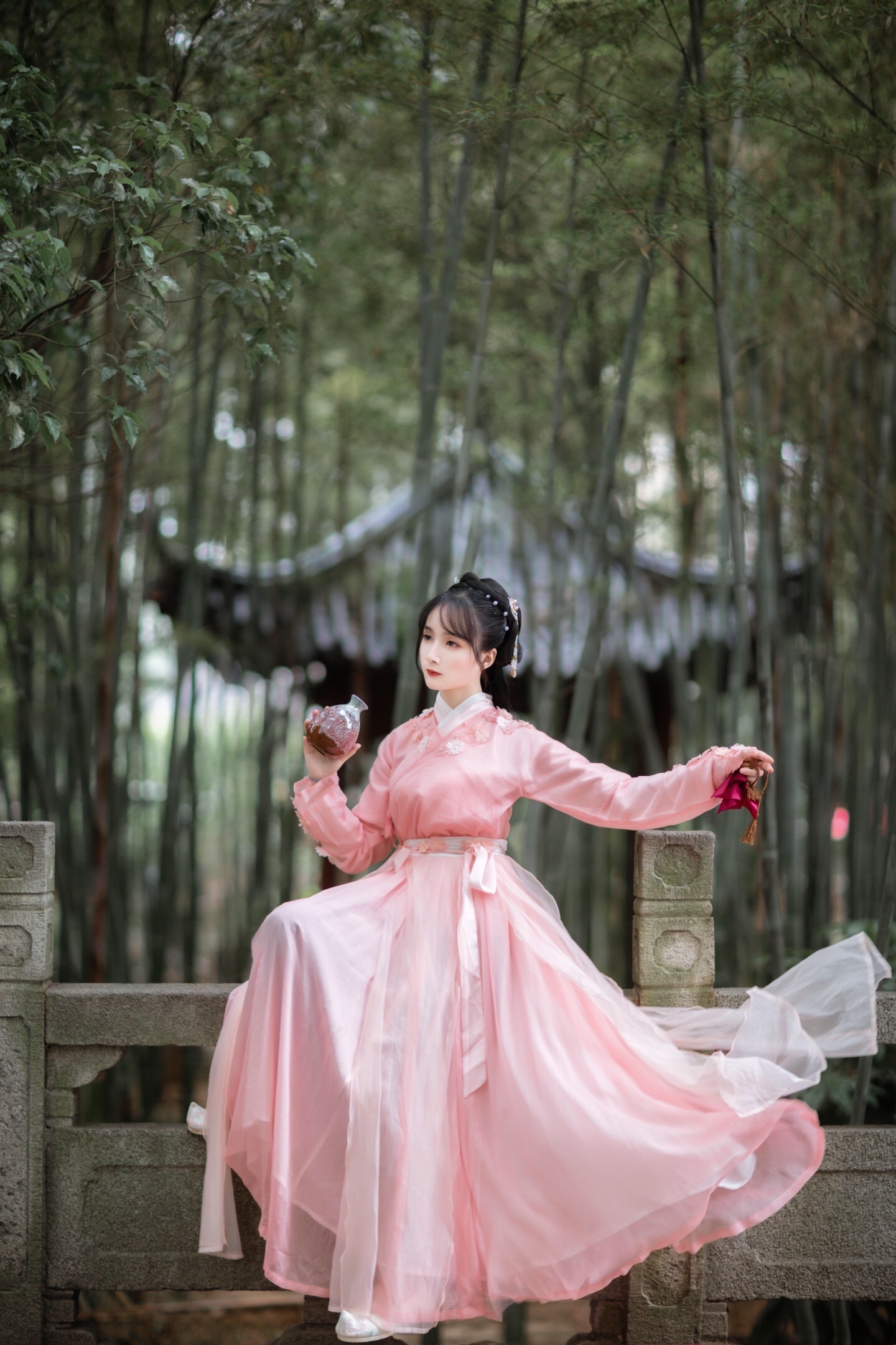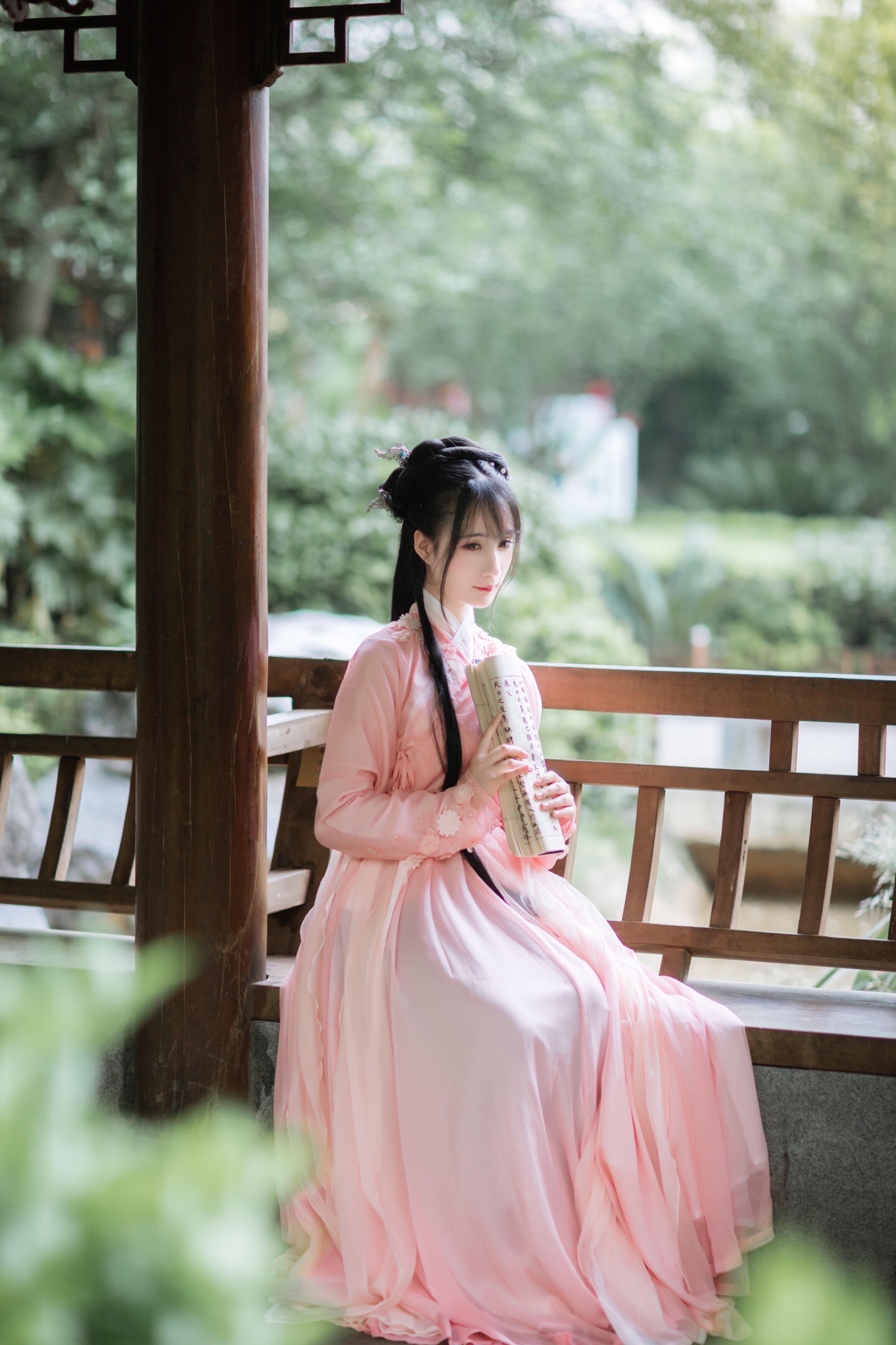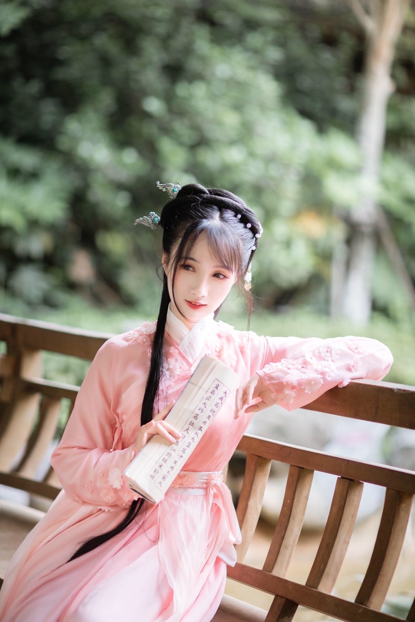 纤纤步,著绣裙。服如脂凝,镜前朱色新。两情朝暮愿长久。花眷枝头,更催佳人留。