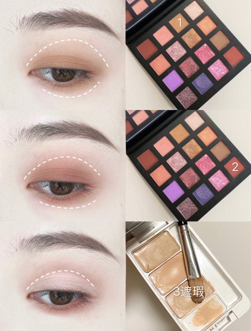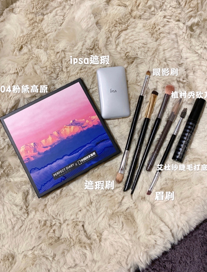 用到的产品在最后一张图,眼影是完美日记和中国国家地理联名盘04粉黛高原,粉紫色系有点高冷又有点可爱。有哑光珠光和闪片,我觉得还是蛮实用的,显色适中很好上手。