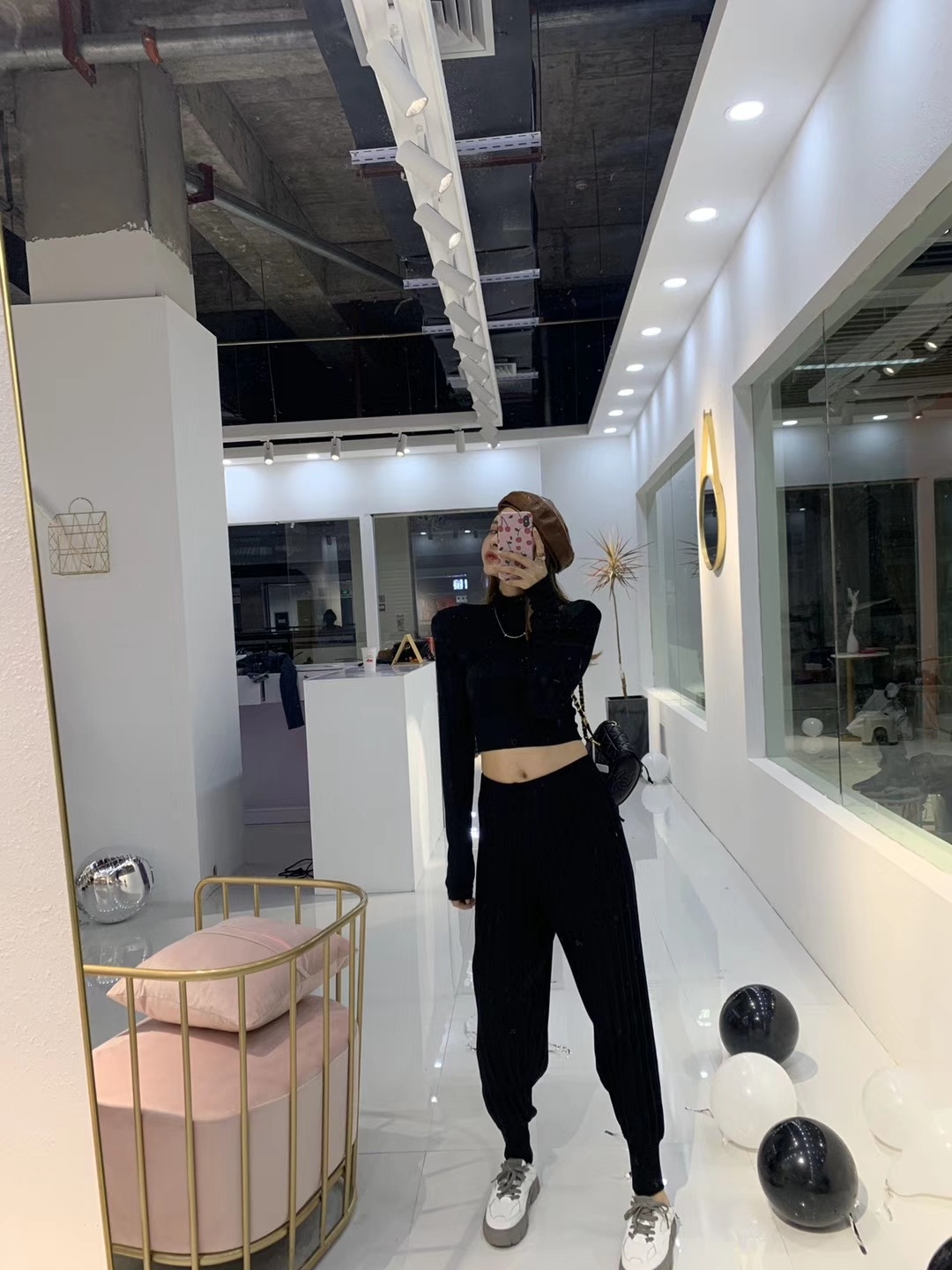 小个子穿搭指南每日穿搭黑色垫肩打底加+黑色针织菠萝裤,时尚休-美图社区-美图秀秀