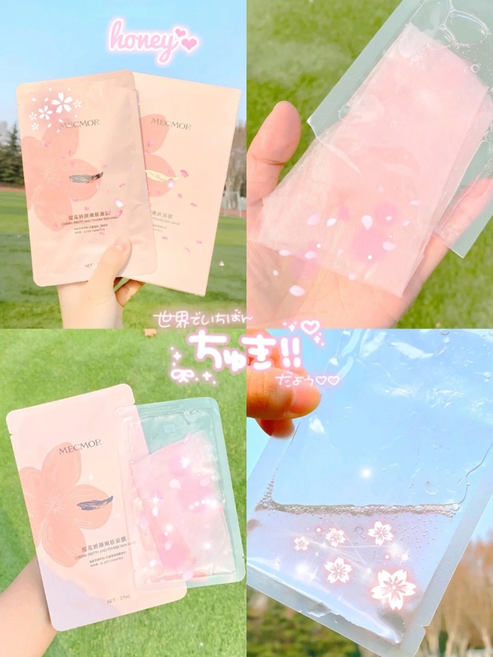 姐妹们来康康这款樱花果冻面膜!粉nunnun的包装好少女打开里面还有独立包装面膜软软的像果冻!居然还有一股甜甜的樱花味!!敷完有种喝饱了水滴感jio不说了俺去囤货了👌🏻