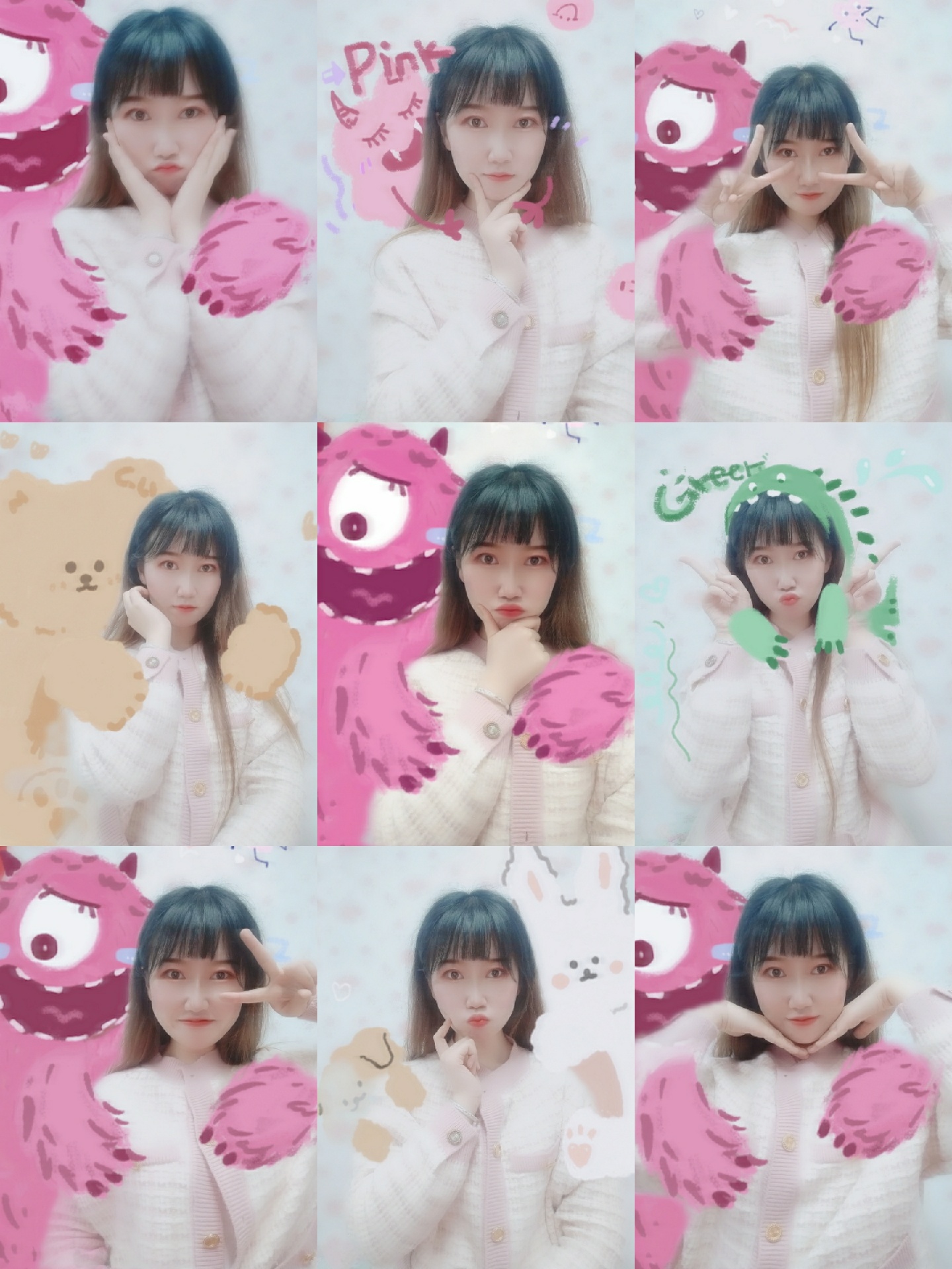 #小怪兽线团涂鸦# #拍照姿势# #九宫格# #自拍姿势#