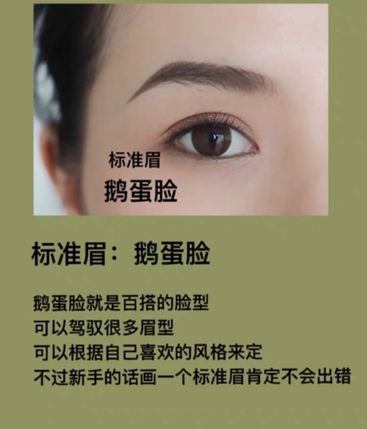 ⭐️鹅蛋脸 适合标准眉 不过这种脸型的女孩可以挑战更多的眉型 大概可以参考刘亦菲