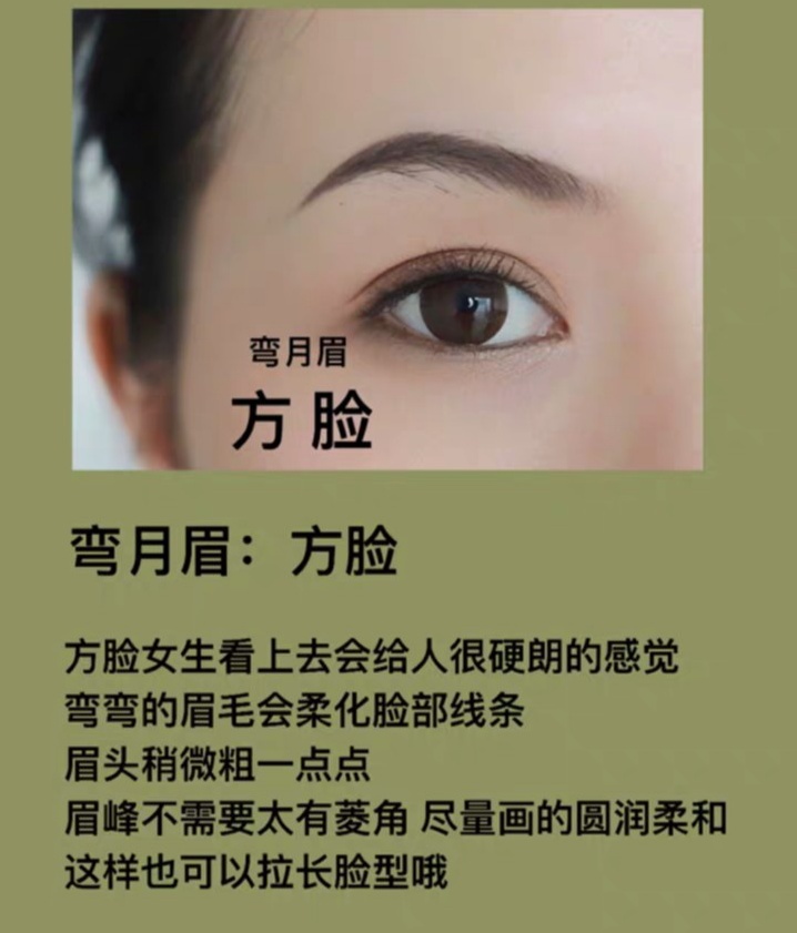 ⭐️方脸 适合弯月眉 方脸女孩给人很硬朗感觉 但柔和圆润的弯月眉会让你温柔许多