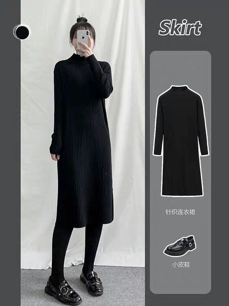 图四:【胖梨阿姨】绝版显瘦连衣裙女秋冬针织遮胯裙子高腰中长款毛衣裙