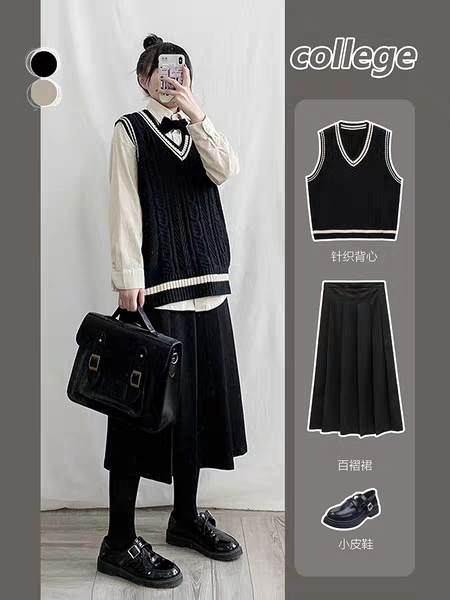 图一:【胖梨阿姨】一日高中生套装女2019新款针织马甲衬衫百褶裙三件套
