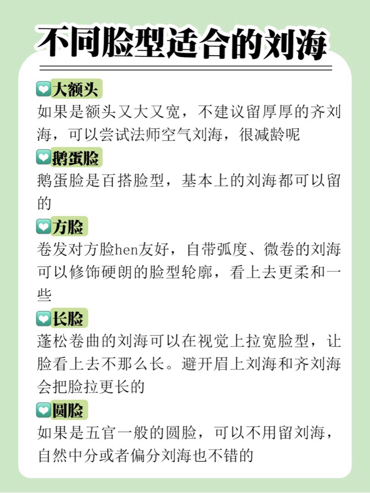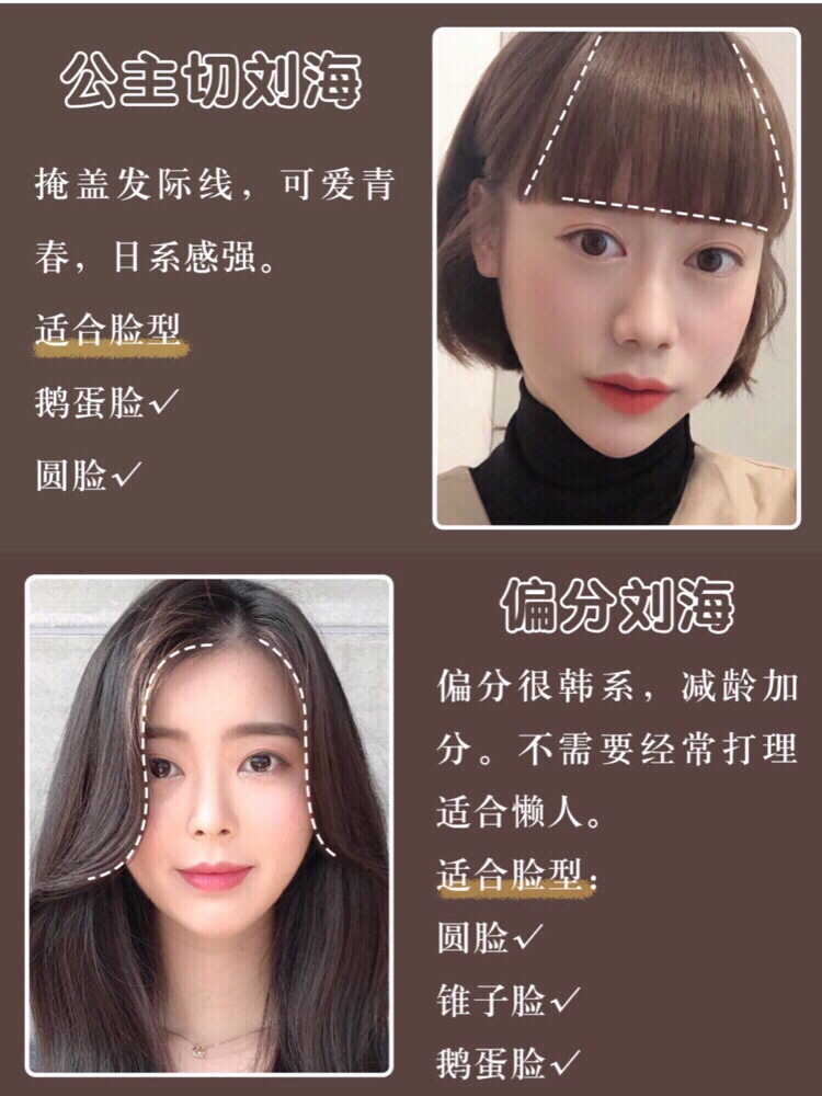 选对刘海显瘦又好看❗️不同脸型适合什么刘海