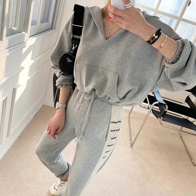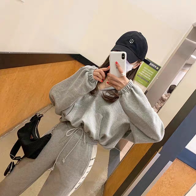 v领连帽抽绳短卫衣搭配字母卫裤,一套非常赞#时尚穿搭# #每日穿搭# #卫衣穿搭# #春季出游搭配# #周末休闲穿搭#