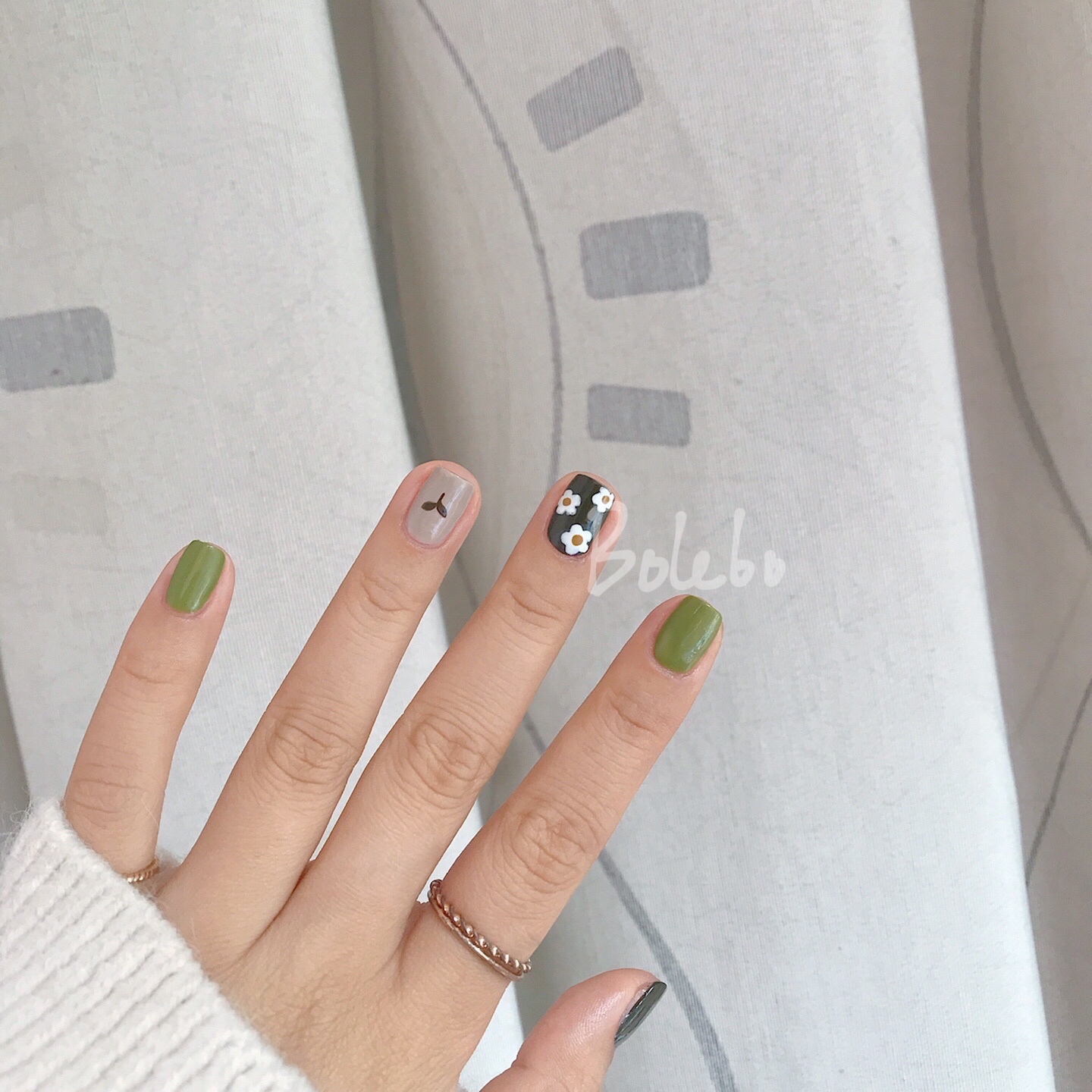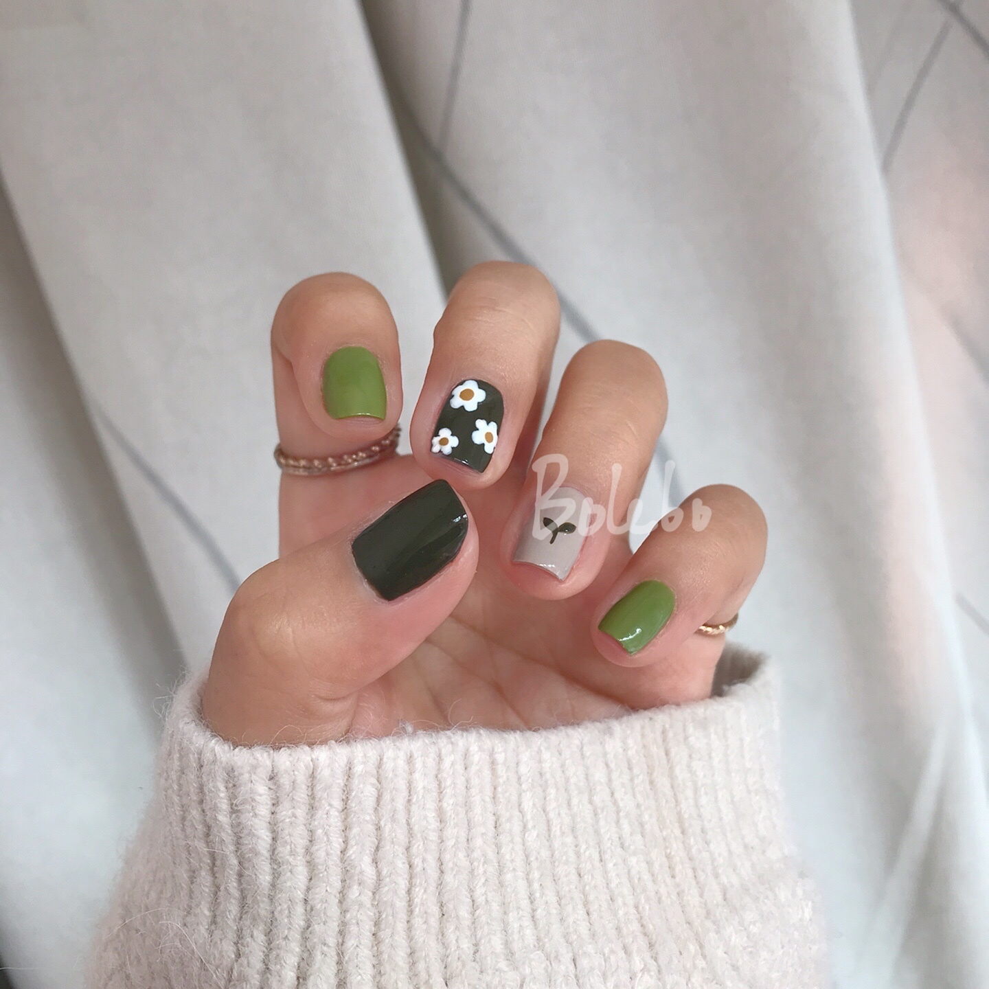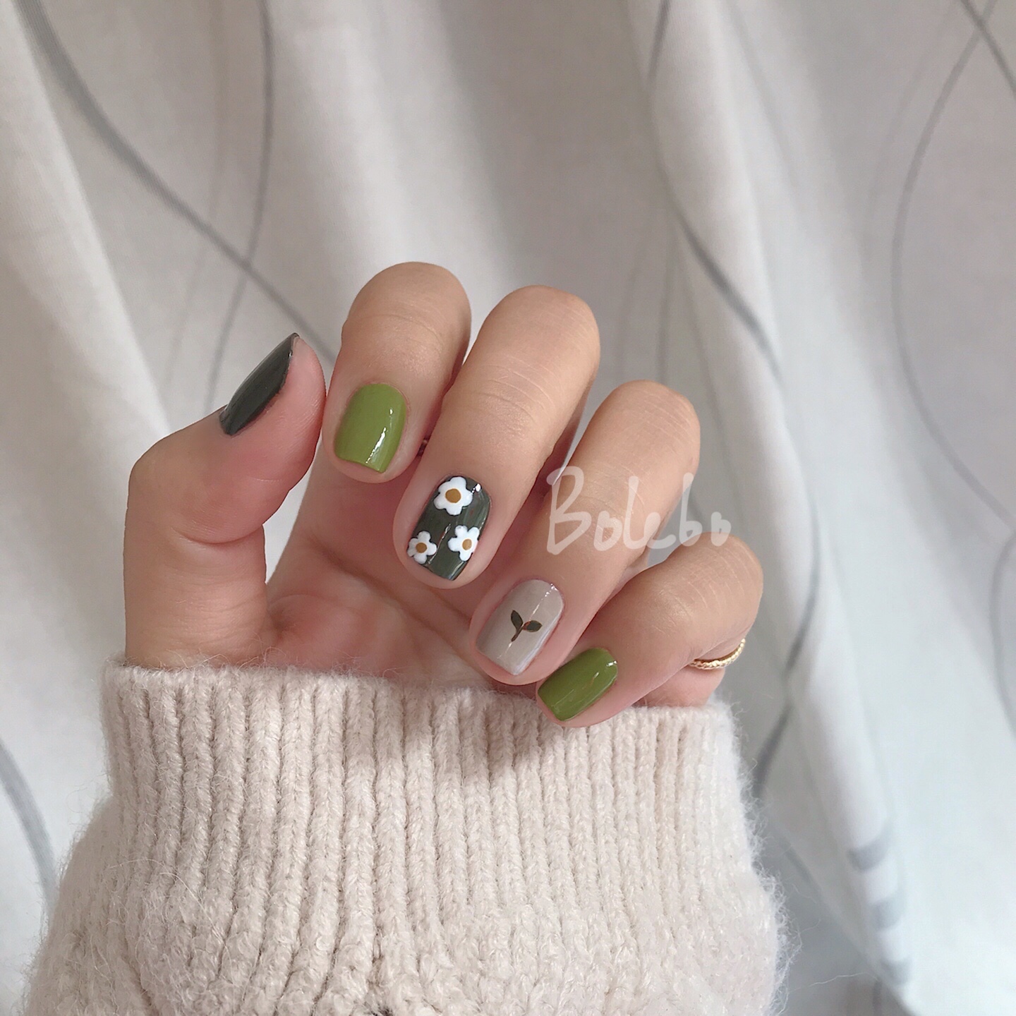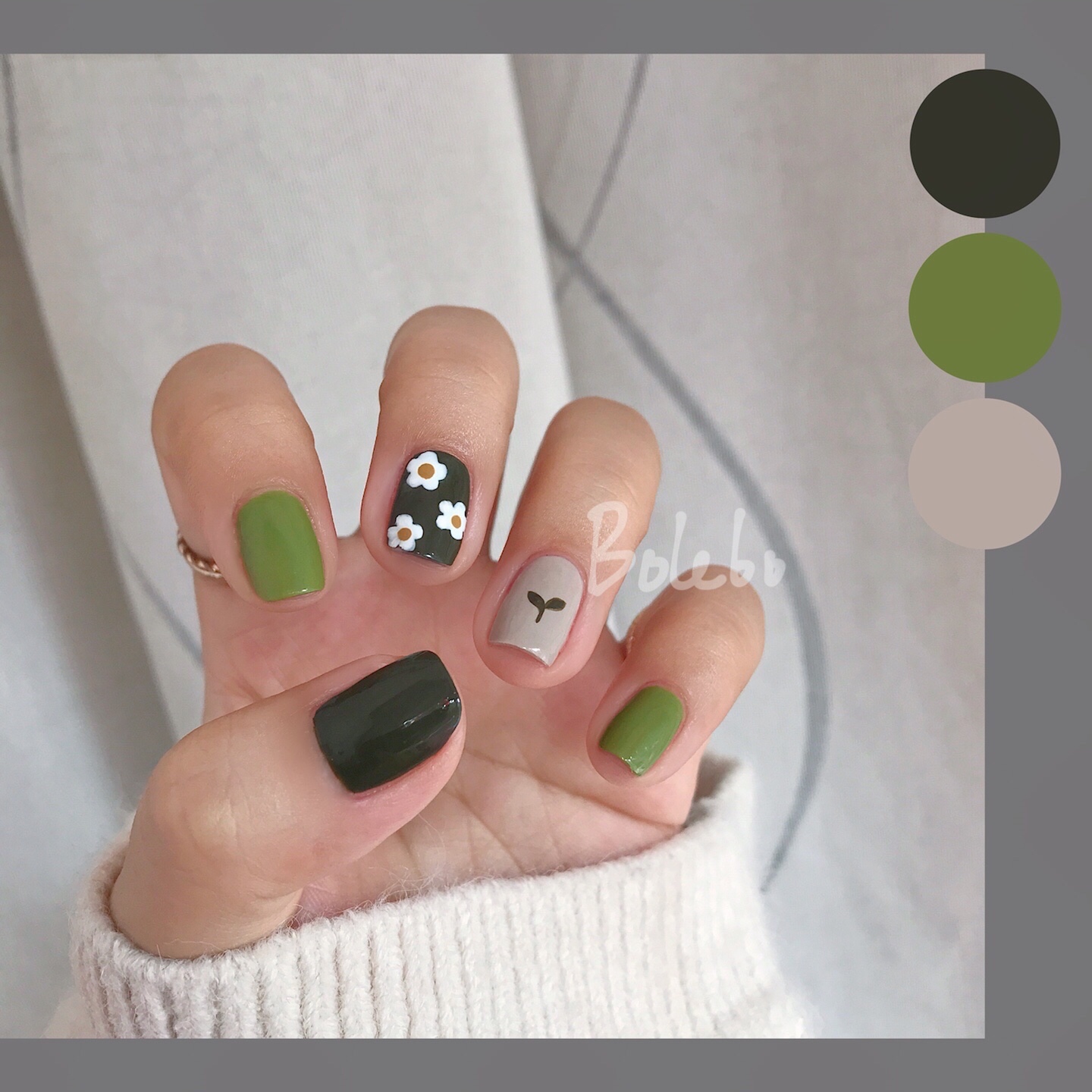 【试色】超适合短指甲🙌🏻 绿色小花美甲🌼
