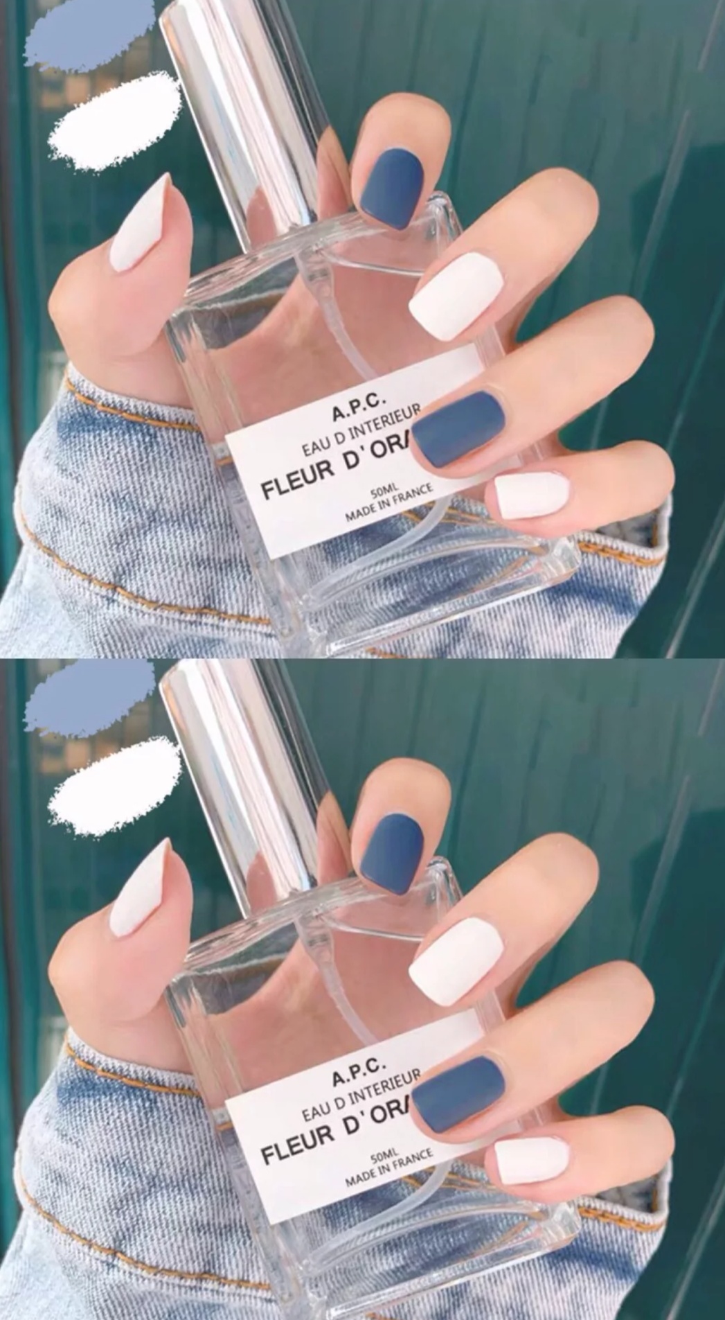 #温柔风# #显白美甲# #蓝色美甲# #指甲控# #宅家也要美#
