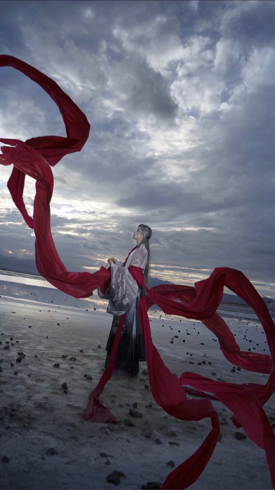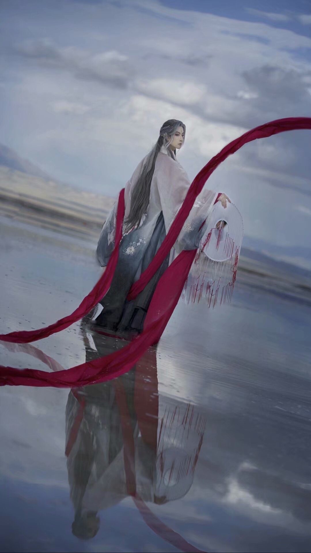 白色的古代服饰加上机械结构意外的和谐。