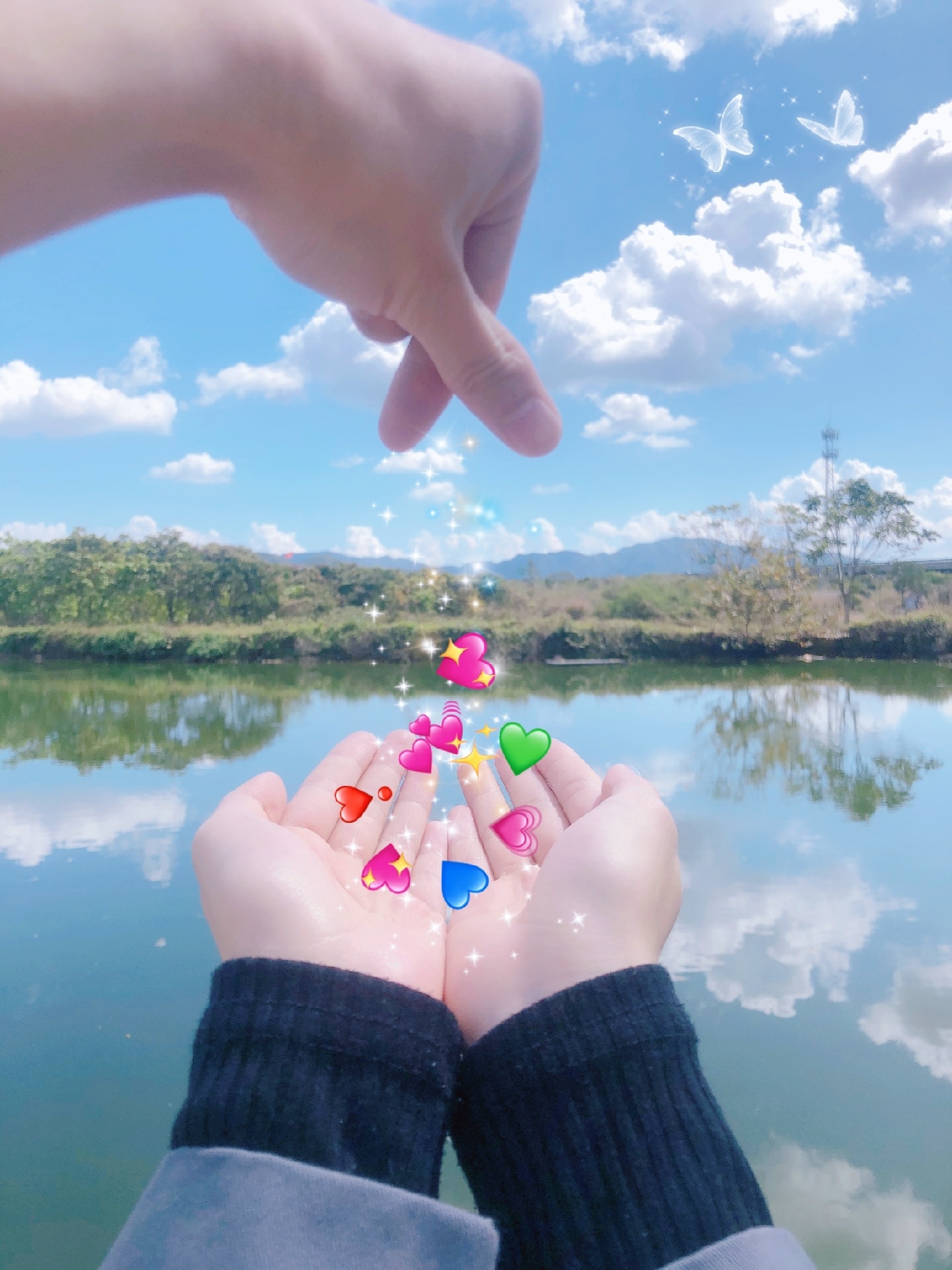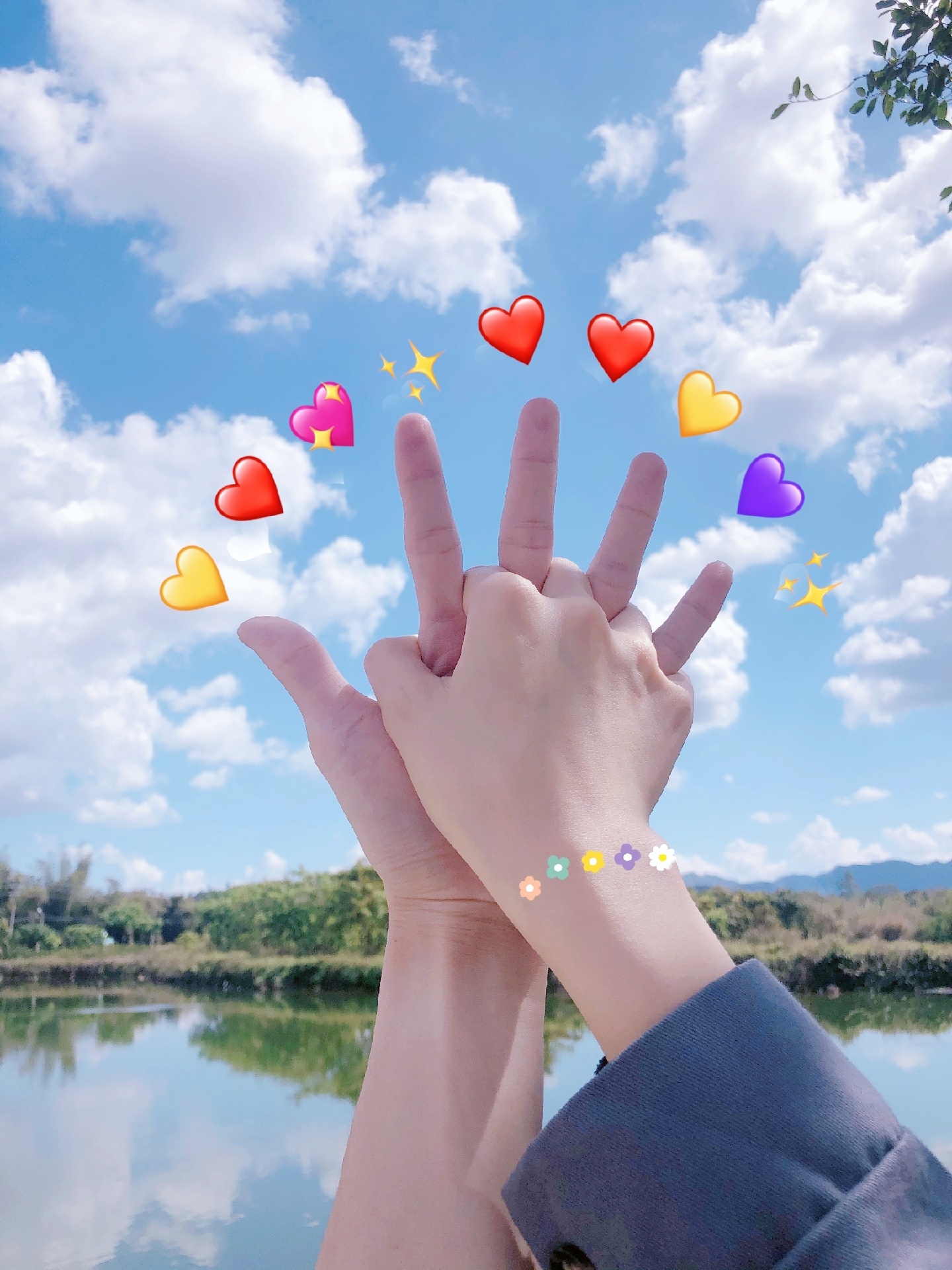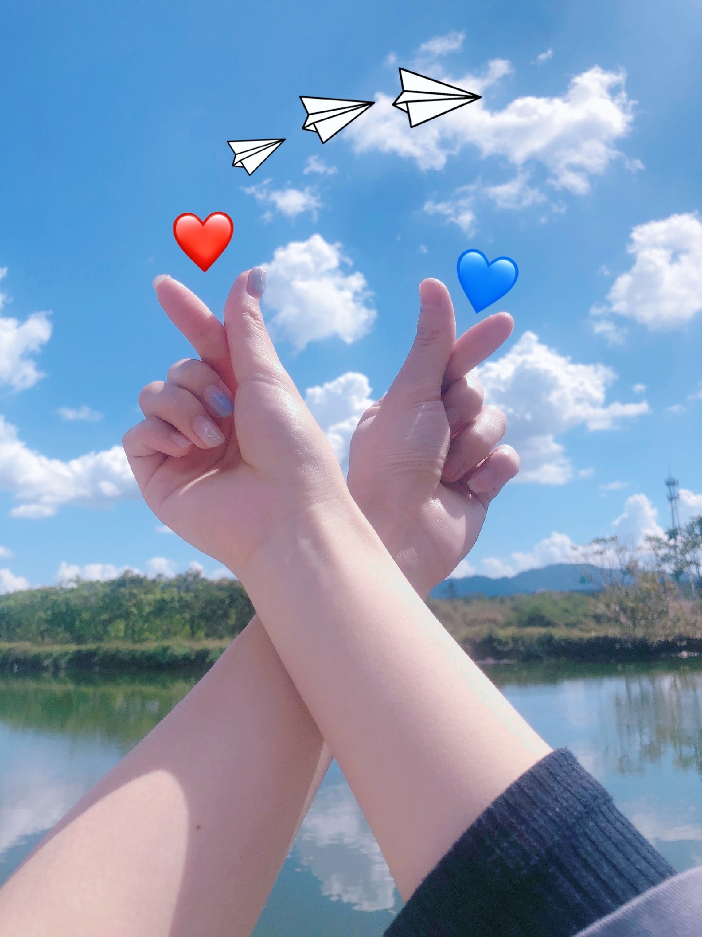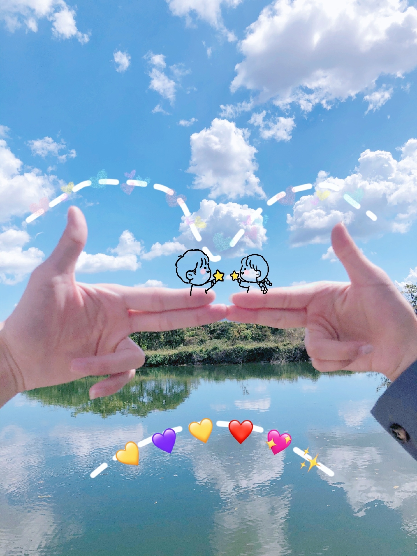 #天空# #表白手势# #美图秀秀涂鸦笔# #情侣日常# #解锁情侣照#