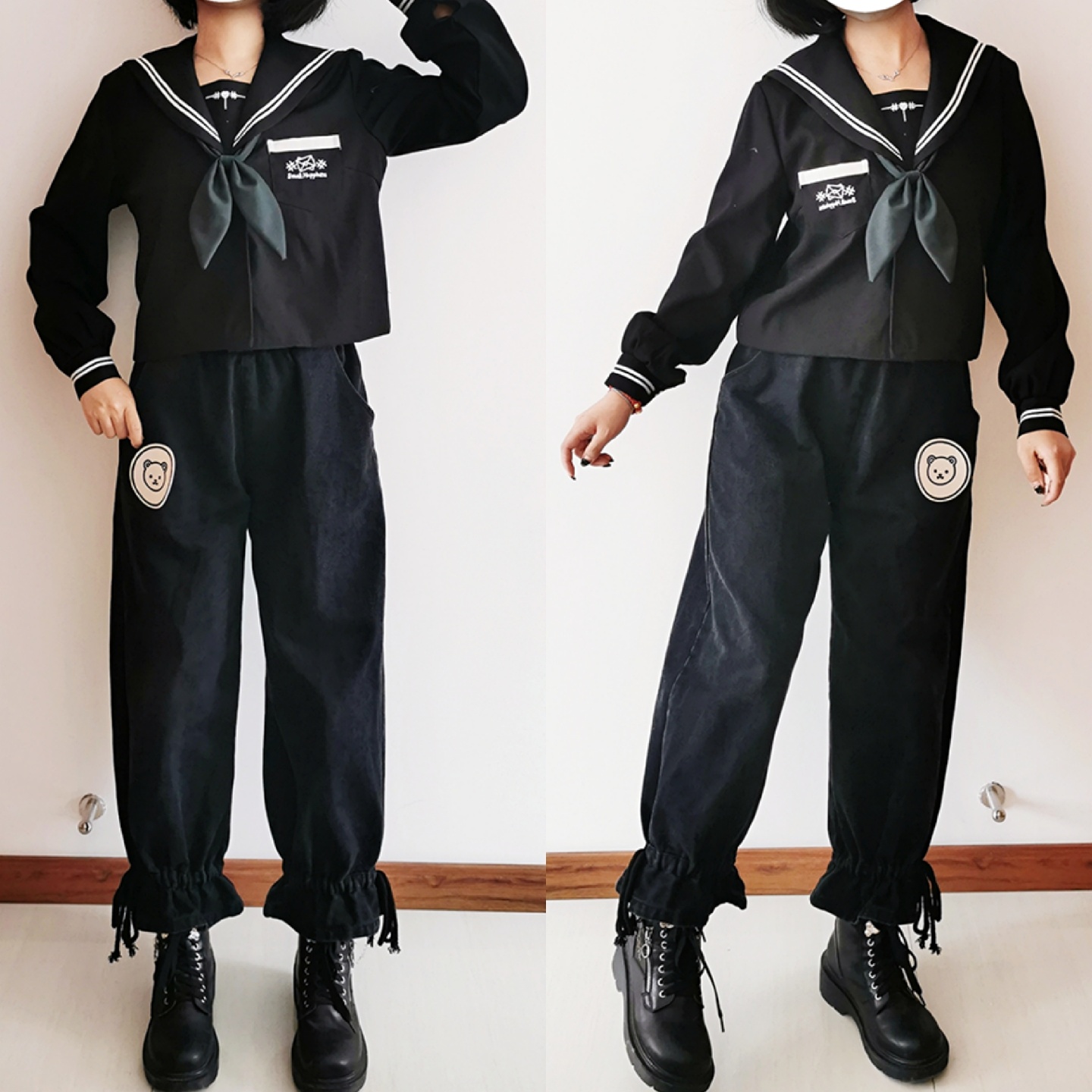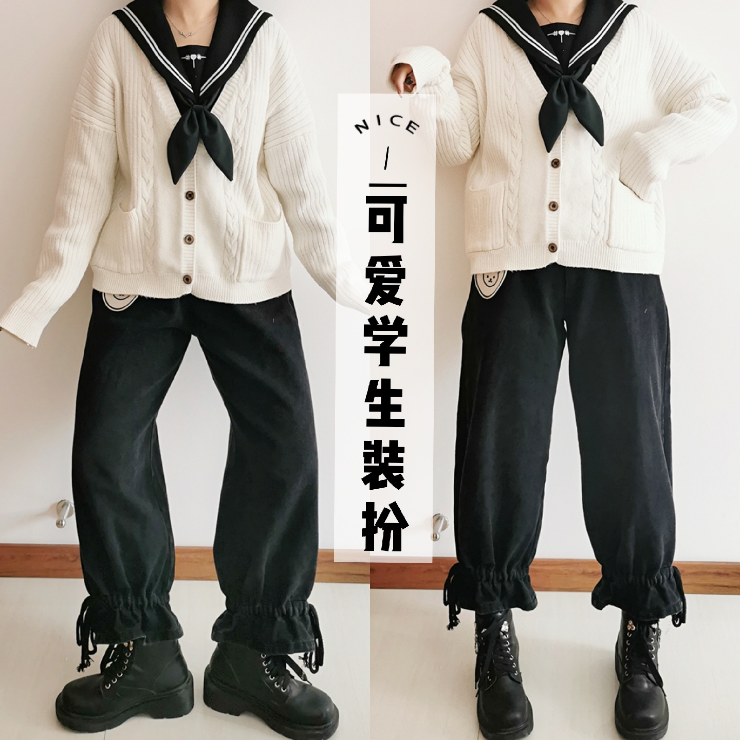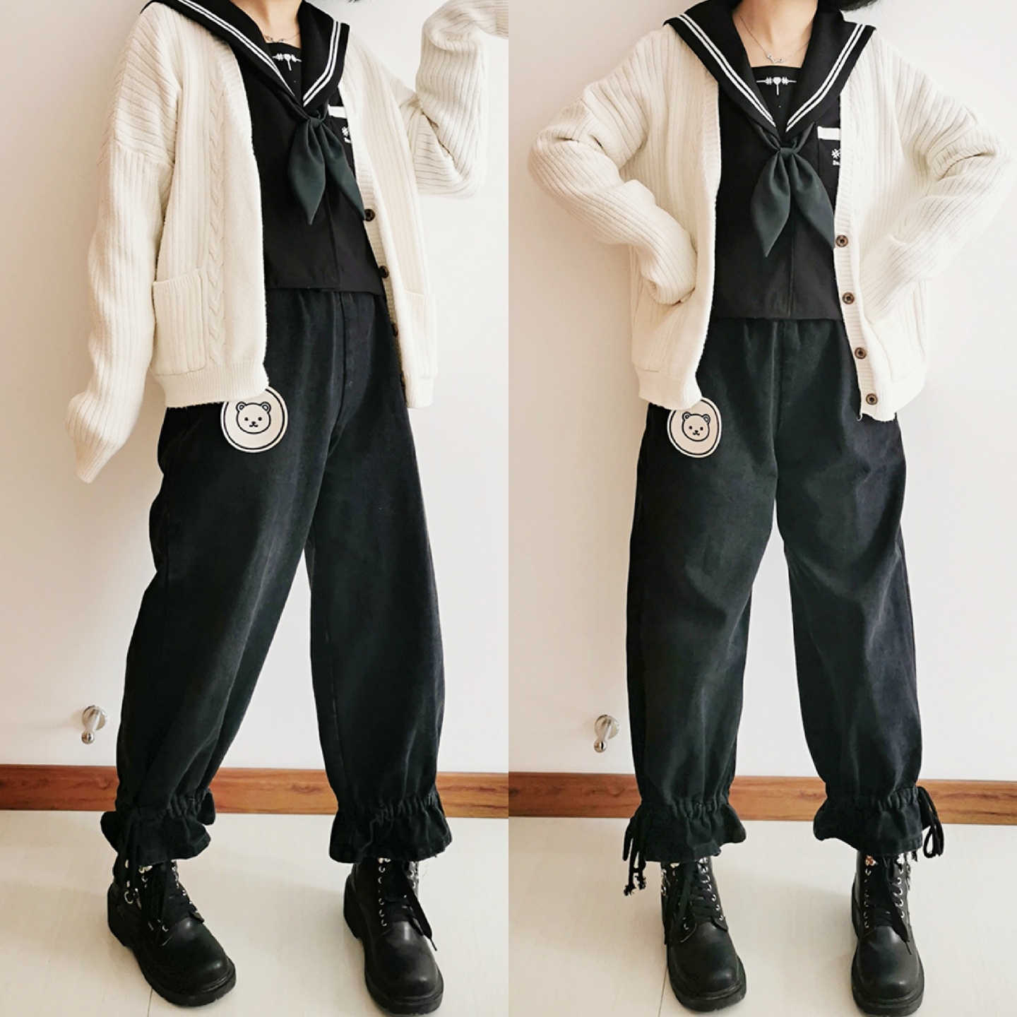 jk制服上衣搭配灯笼裤加马丁靴!
