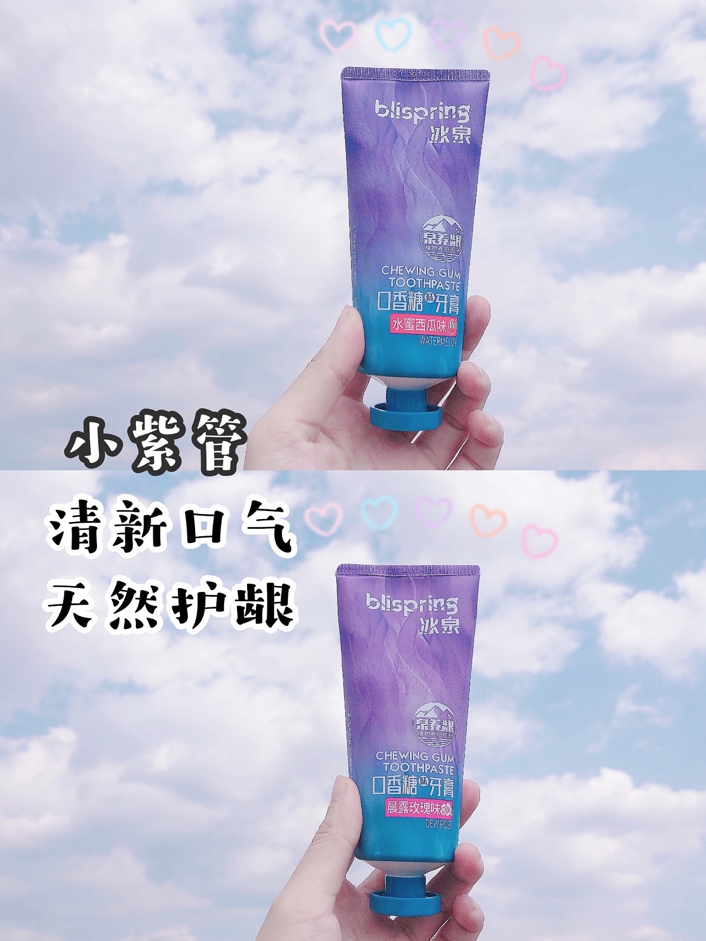 🍉小紫管 水蜜西瓜味和晨露玫瑰味,这两款里面都是有甘草根提取物和金银花提取物。可以很好地保护牙龈健康,而且会减少牙龈红肿的现象