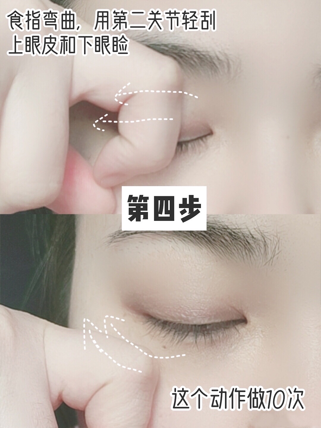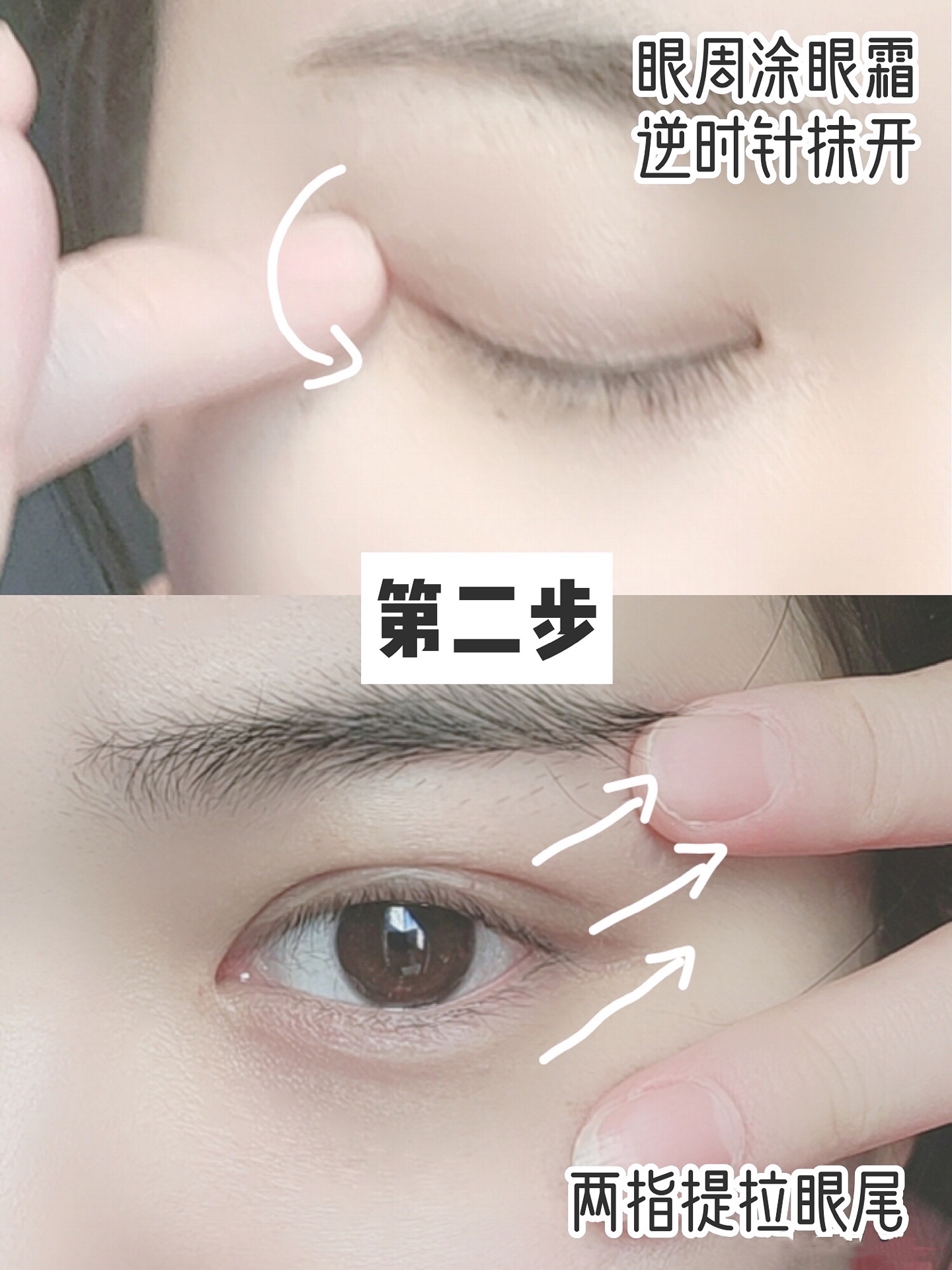 按摩之前必涂眼霜这个大家都知道吧~逆时针推开眼霜,食指中指轻轻提拉上下眼皮到太阳穴