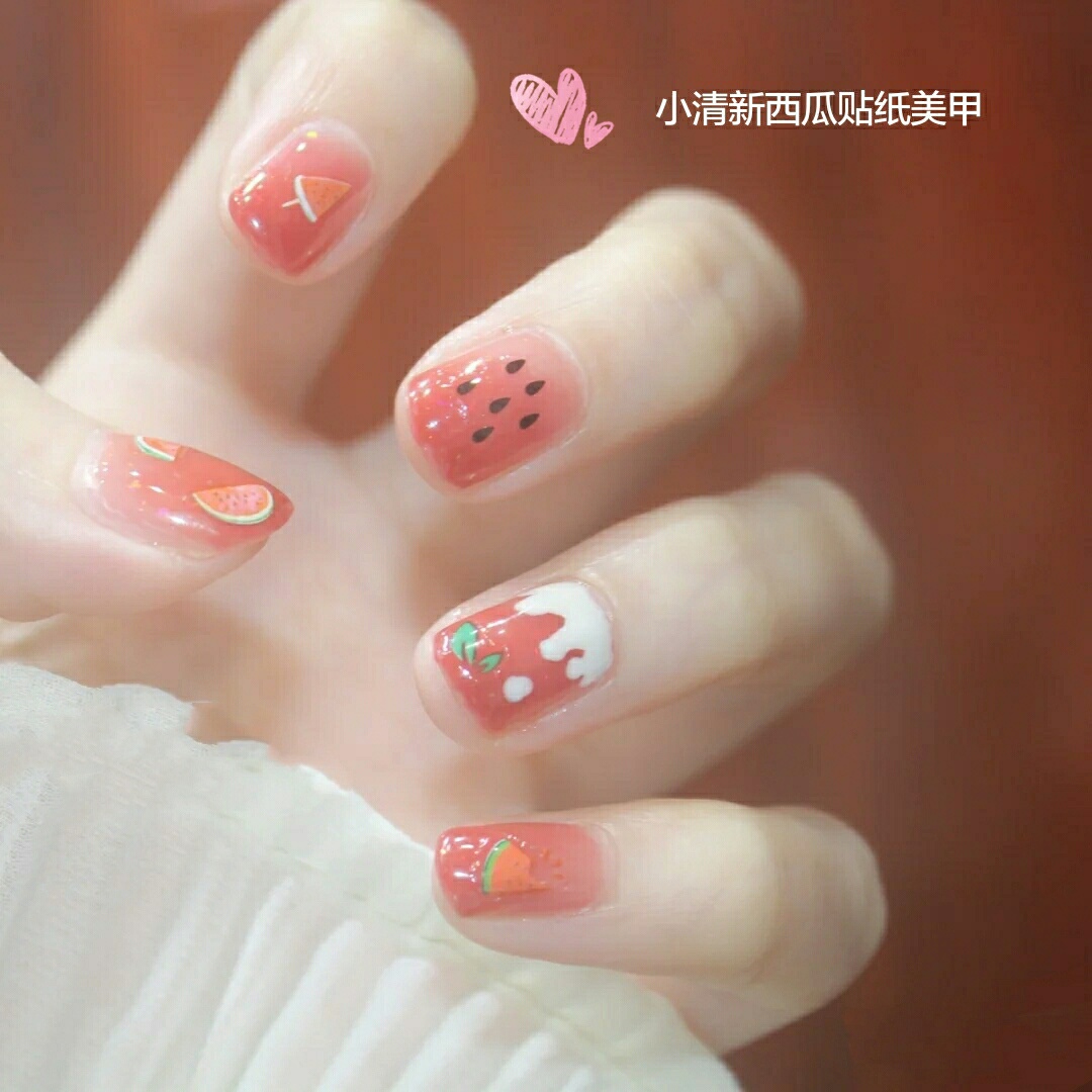 这款小清新美甲最适合春夏日了淡淡的西瓜红在阳光下buling-美图社区-美图秀秀